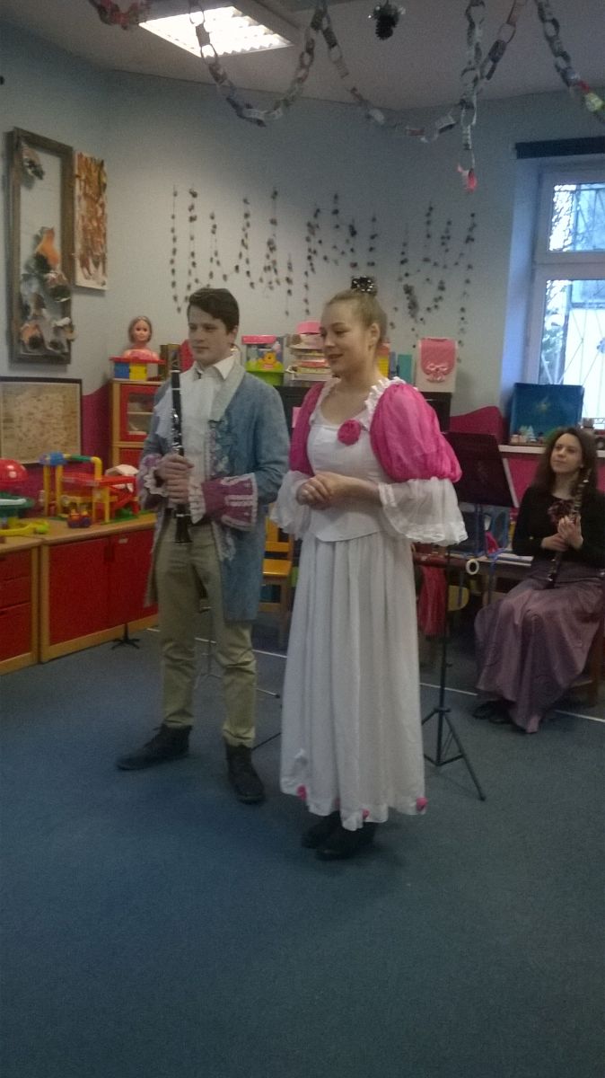 Na początku stycznia nasze maluchy z grupy „Radosne Krasnale” odwiedzili artyści z Agencji Artystycznej „Pro Musica” z koncertem pt. „Srebrne pantofelki królewny Anabelki.” Muzycznej opowieści towarzyszyła takie instrumenty jak: obój, klarnet i fagot.