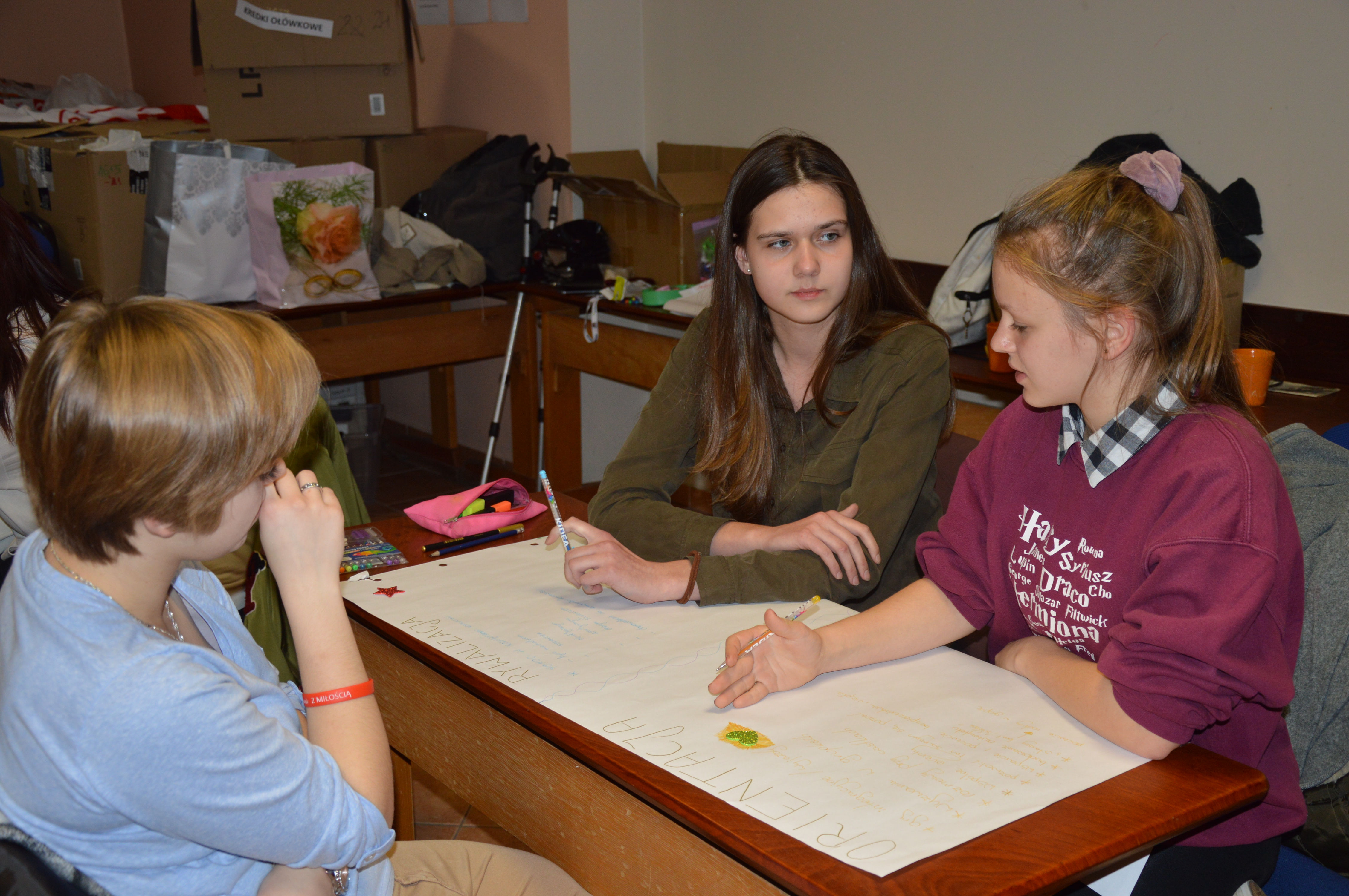 Dziś na zajęciach w ramach projektu „Młodzi liderzy w akcji” uczestnicy mierzą sie z trudnym tematem rozwiązywania konfliktów. Konflitk jest niedołączną i ważną częścią naszego życia  – dobrze przepracowany służy rozwojowi zarówno osobistemu, jak i całej grupy. W pracy lidera znajomość procesów grupowych oraz strategii rozwiazywania konflików jest szczególnie ważna.