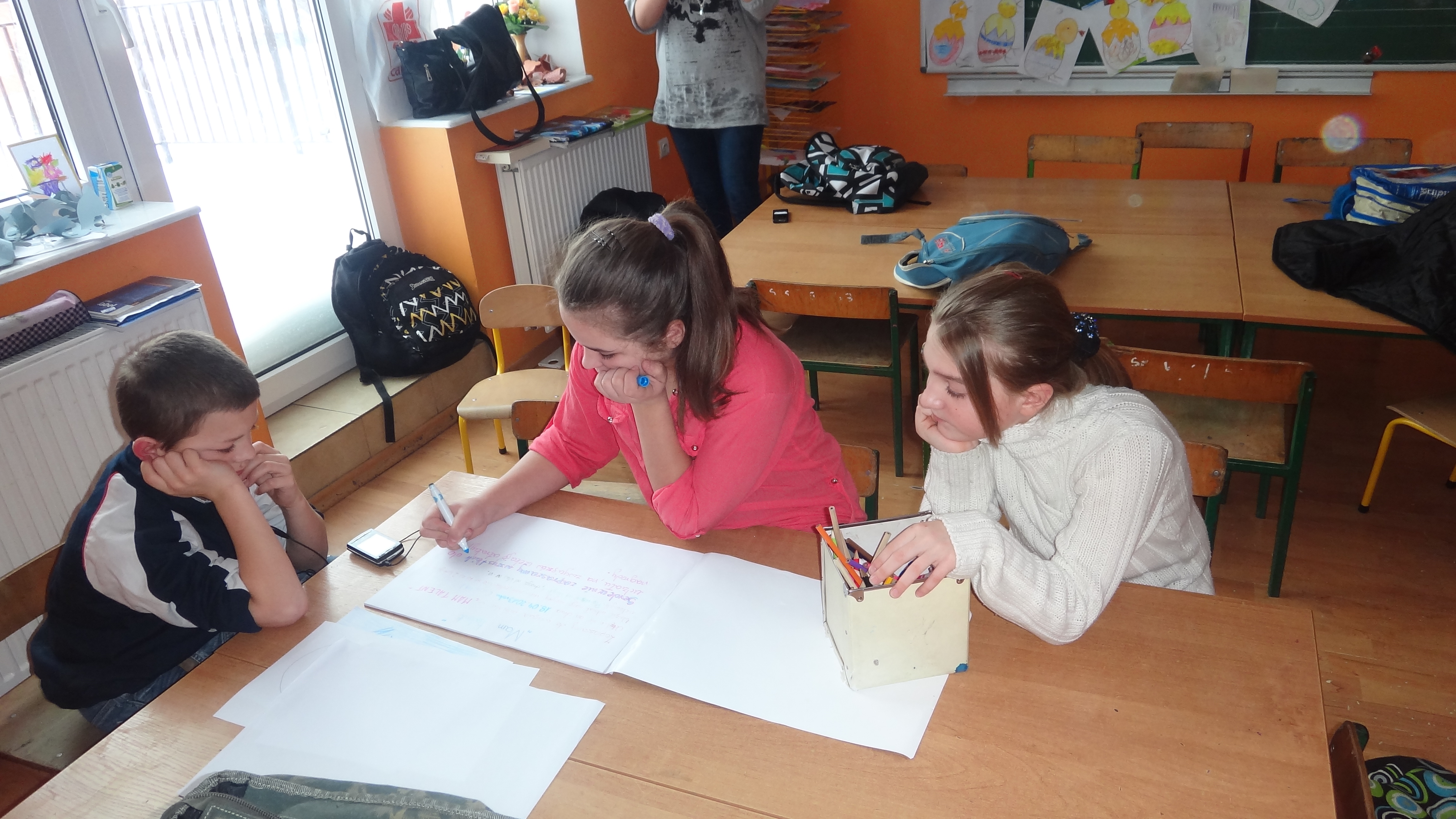 Postanowiliśmy więc pomyśleć, co tu zrobić, żeby przerwy międzylekcyjne były ciekawsze i bezpieczniejsze. Tak powstał pomysł na projekt ,,Bezpieczna przerwa,, – w ramach którego wprowadziliśmy: mini radiowęzeł, gry i zabawy oraz ,,długą” przerwę na sali gimnastycznej.