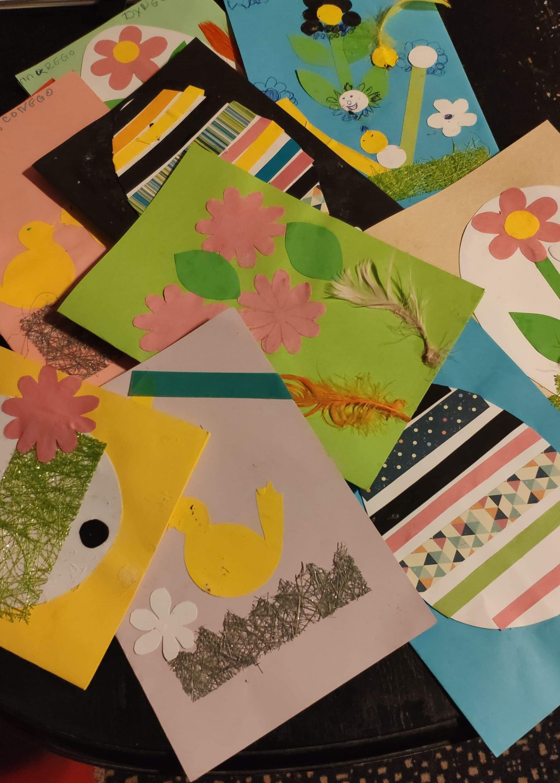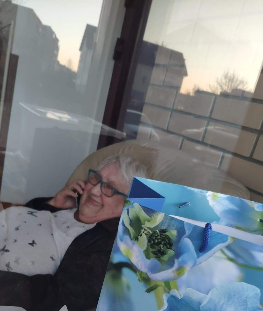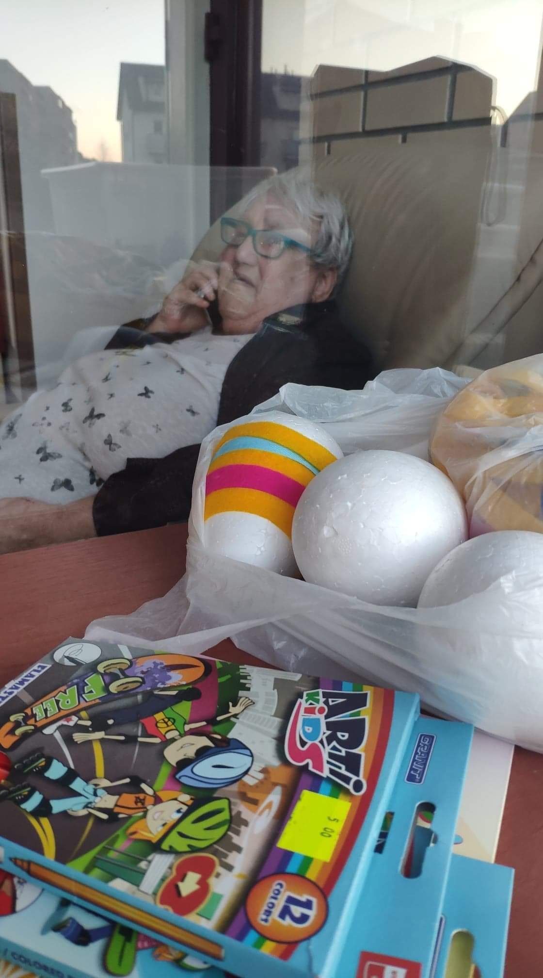 Dzisiejsza wizyta u uczestniczki  projektu  SOW. Kontakt jedynie przez szybkę i rozmowa przez telefon.  Spotkanie przebiegło w urodzinowej atmosferze, oczywiście  nie zabrakło prezentu. Uczestniczka w ramach zajęć wykonała  kartki okolicznościowe, które zamierza wysłać rodzinie na święta Wielkonocne.