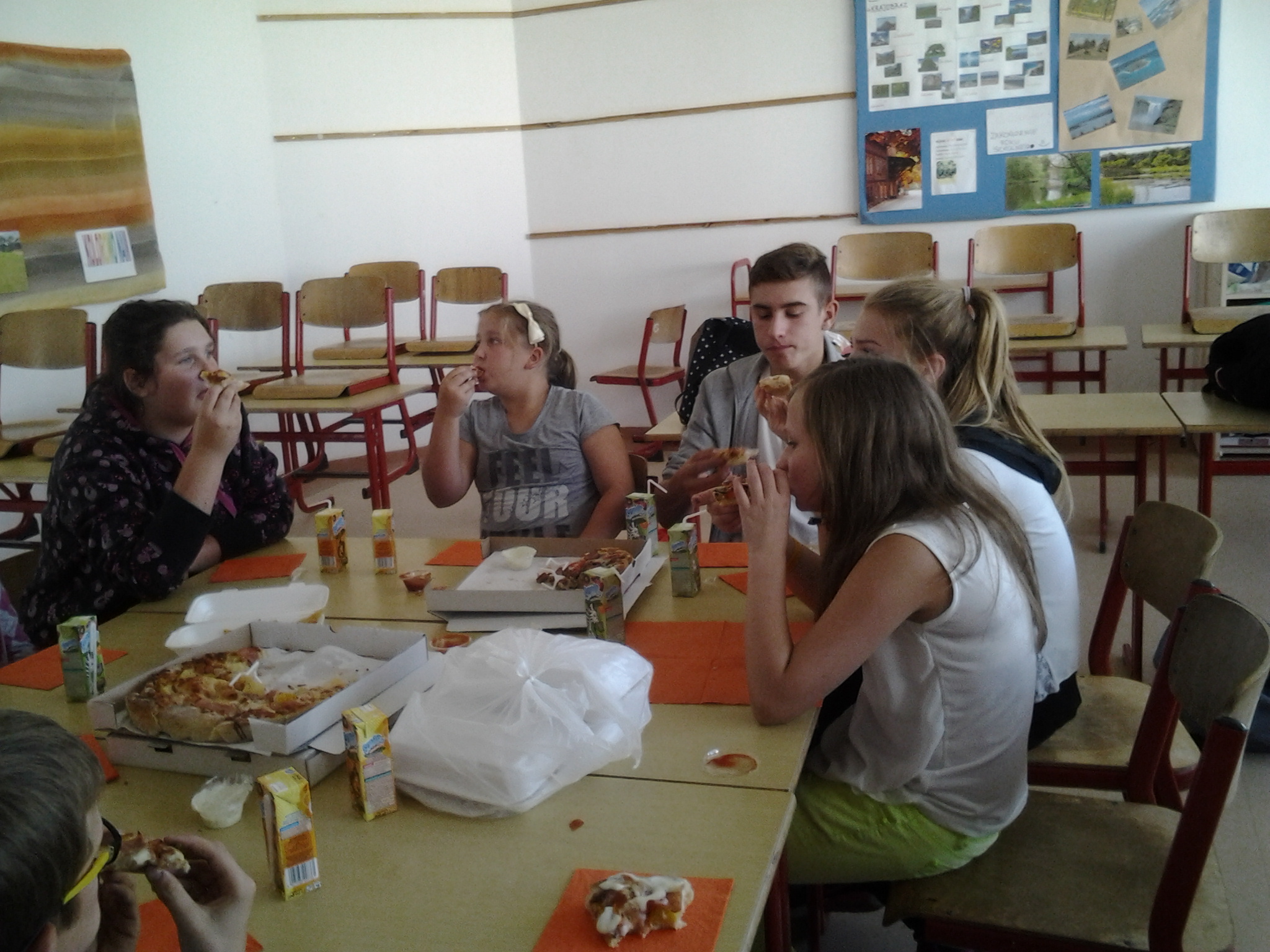 Święto chłopaków, odbyło się u nas w wersji kulinarnej. Przygotowywaliśmy sałatkę owocową, która cieszyła się sporym powodzeniem – banany, brzoskwinie, gruszki, borówka amerykańska,  wszystkim bardzo smakowała. Sos do niej był również wyśmienity – bo waniliowy z dodatkiem bitej śmietany. Jednak przed zjedzeniem tej sałatki, nasze brzuchy zostały poczęstowane pyszną pizzą – której niestety sami nie zrobiliśmy, gdyż warunki na to nie pozwalają. Dzień świetlicowy zakończył się na boisku grą w piłkę siatkową.