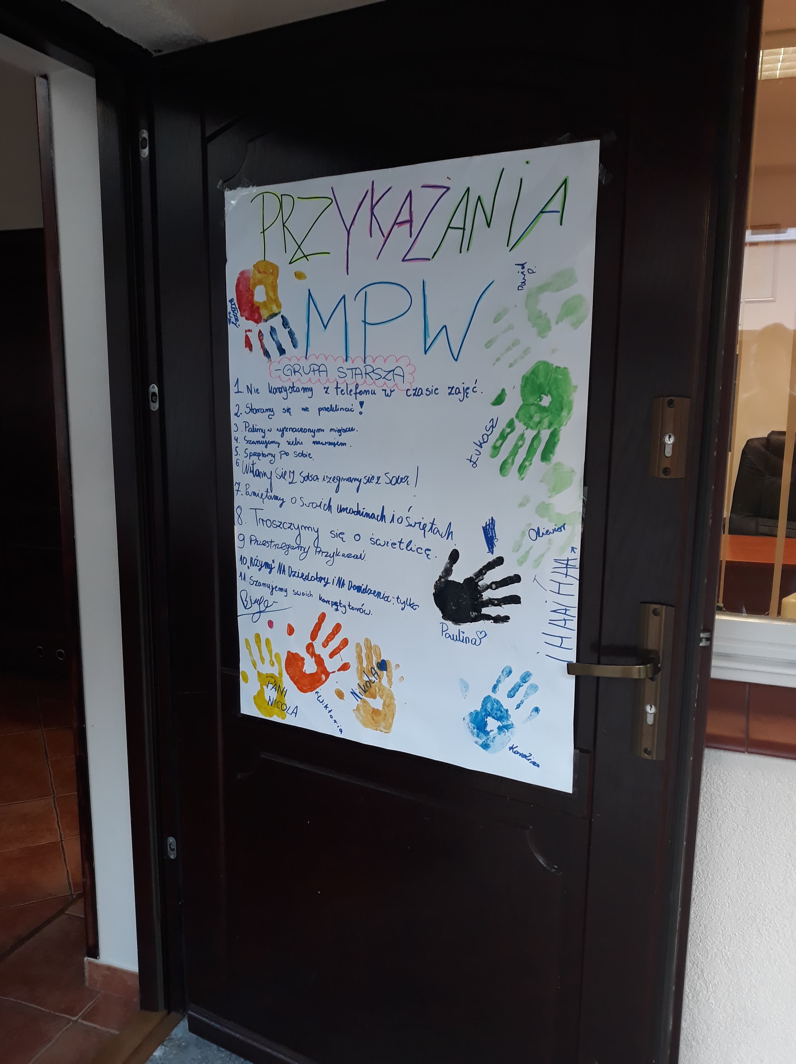 Obok zasad takich jak ,,sprzątamy świetlicę” czy ,, nie używamy telefonu w czasie zajęć”, nie zapomnieliśmy o tym, by ,,pamiętać o swoich urodzinach” oraz ,,witać się i żegnać ze sobą”.