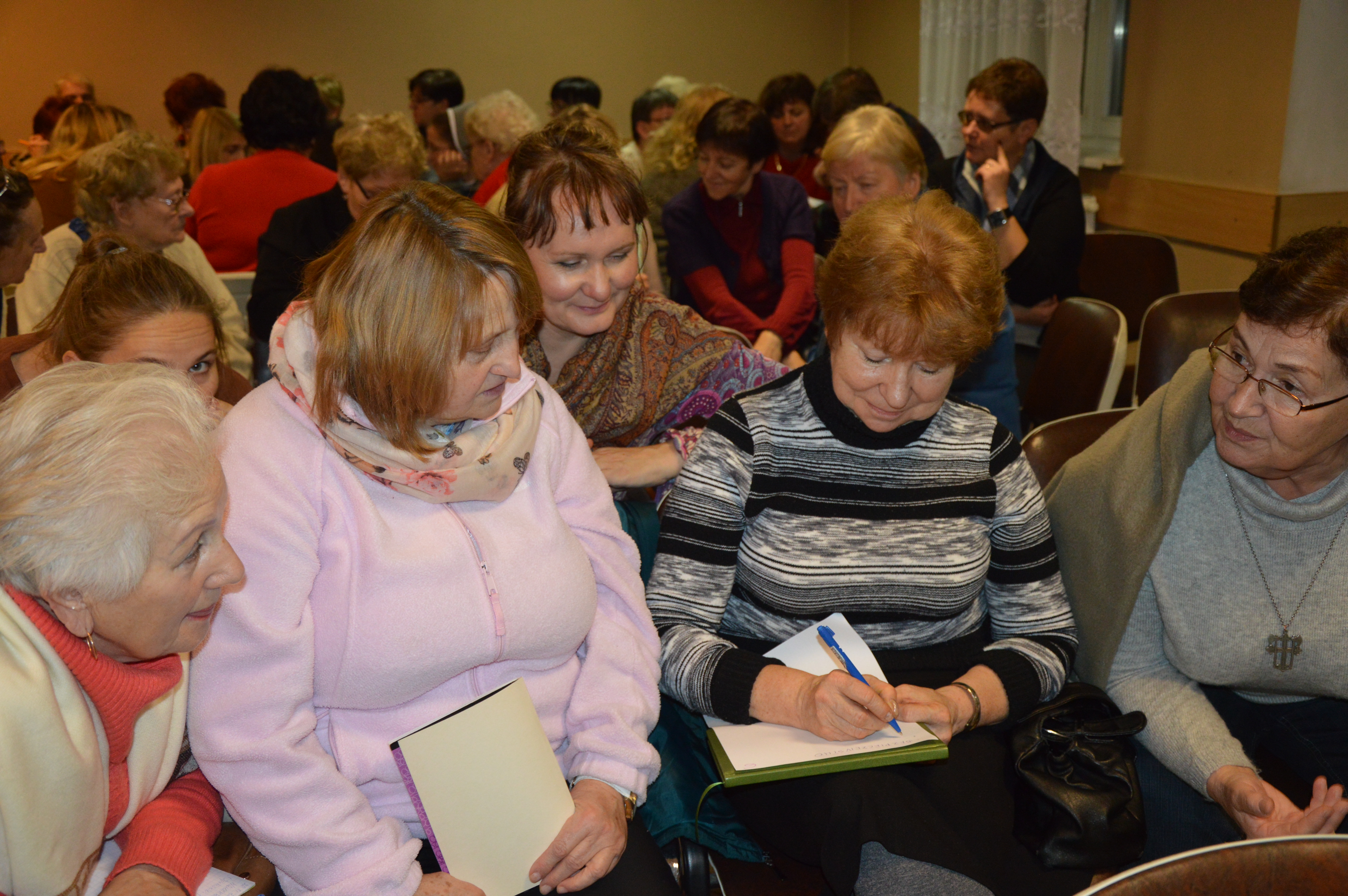 Ostatni weekend w Warzenku należał do Parafialnych Zespołów Caritas. Członkowie PZC zawitali do ośrodka w piątek po południu i zostali do sobotniego wieczora uczestnicząc w szkoleniu dotyczącym pracy z osobami chorymi i niepełnosprawnymi. Pierwszy blok zajęć poprowadziła Pani Ania Wyszadko, która na co dzień jako psycholog pracuje w sopockim hospicjum wspierając pacjentów i ich rodziny w zmaganiu się z chorobą oraz radzeniu sobie ze stratą. Drugiego dnia dzięki Panu Piotrowi Harhajowi z gdyńskiego ośrodka pomocy społecznej dowiedzieliśmy w jaki sposób MOPS we współpracy z PFRON-em wspiera osoby niepełnosprawne i jakiego rodzaju pomocy możemy tam szukać. Ostatnia część spotkania poświęcona była działaniom naszej Caritas podejmowanym na rzecz osób niepełnosprawnych. W ramach integracji wieczorem w piątek spotkaliśmy się na tańcach modlitewnych i integracyjnych, które tak jak przed rokiem poprowadziły dla nas p. Eugenia i p. Karolina z PZC w Rumi i podobnie jak rok temu dały nam mnóstwo radości.