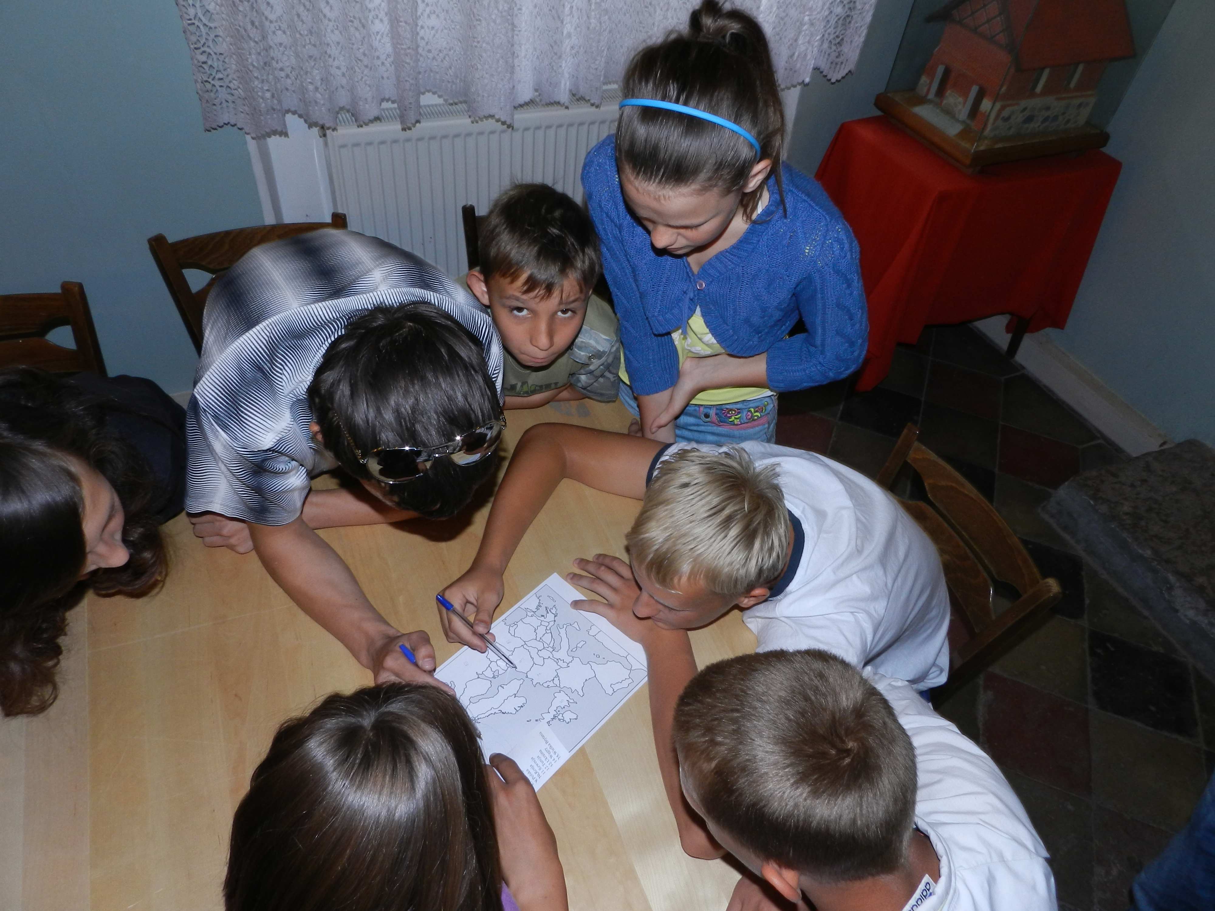 Tym razem nasz wujek Aleksij przygotował dla nas i zaproszonych gości z Świetlicy „Pod Kasztanem „ quiz z takich tematów jak : państwa, stolice, flagi, tradycyjne potrawy, znane postaci, znane zabytki. Tak jak i za pierwszym razem zostaliśmy podzieleni na trzy drużyny. Każda drużyna rozwiązywała zadania w oddzielnym pomieszczeniu tak aby przypadkiem nie podsłuchać prawidłowych odpowiedzi. Dodatkowym utrudnieniem było to, że zadania musieliśmy rozwiązywać w wyznaczonym przez wujka czasie. Oj nie było łatwo !!! Wszystko nam się mieszało, a najgorsze było to jak np. trzy osoby miały odmienne zdanie. I tym sposobem umieściliśmy „Reksia” z dobranockowej bajki w Czechach. No jakoś tak nam się pomylił z „Krecikiem”. Naszą obroną było to, że to nie jest bajka naszego pokolenia. Na koniec quizu oczywiście nastąpiło wytypowanie zwycięskiej drużyny oraz wręczenie słodkich nagród. Potem razem wspólnie zjedliśmy słodki deser, który przygotowały nasze ciocie „Budyń czekoladowy z bitą śmietaną i roztopioną czekoladą”. To był naprawdę ciekawy i wesoły dzień, a na dodatek niesamowicie słodki. Nie ma to jak połączenie przyjemnego z pożytecznym. Brzuchy pełne i w głowie też więcej.