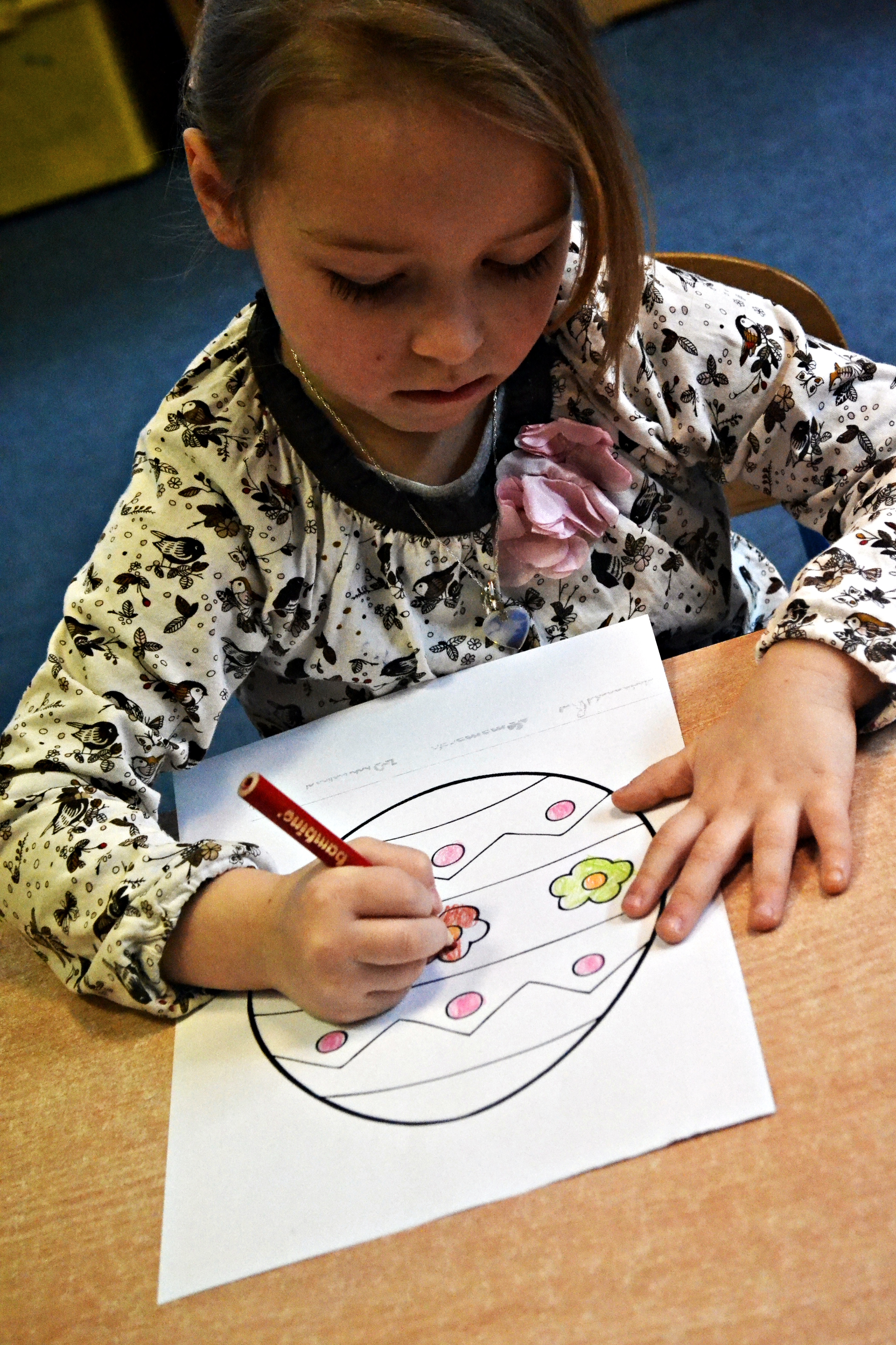 Radosne Krasnale przygotowują się do Świąt. Dzisiaj poznały jedną z tradycji Wielkanocnych – malowanie pisanek. Podczas zajęć powstały pięknie pokolorowane świąteczne jajeczka.