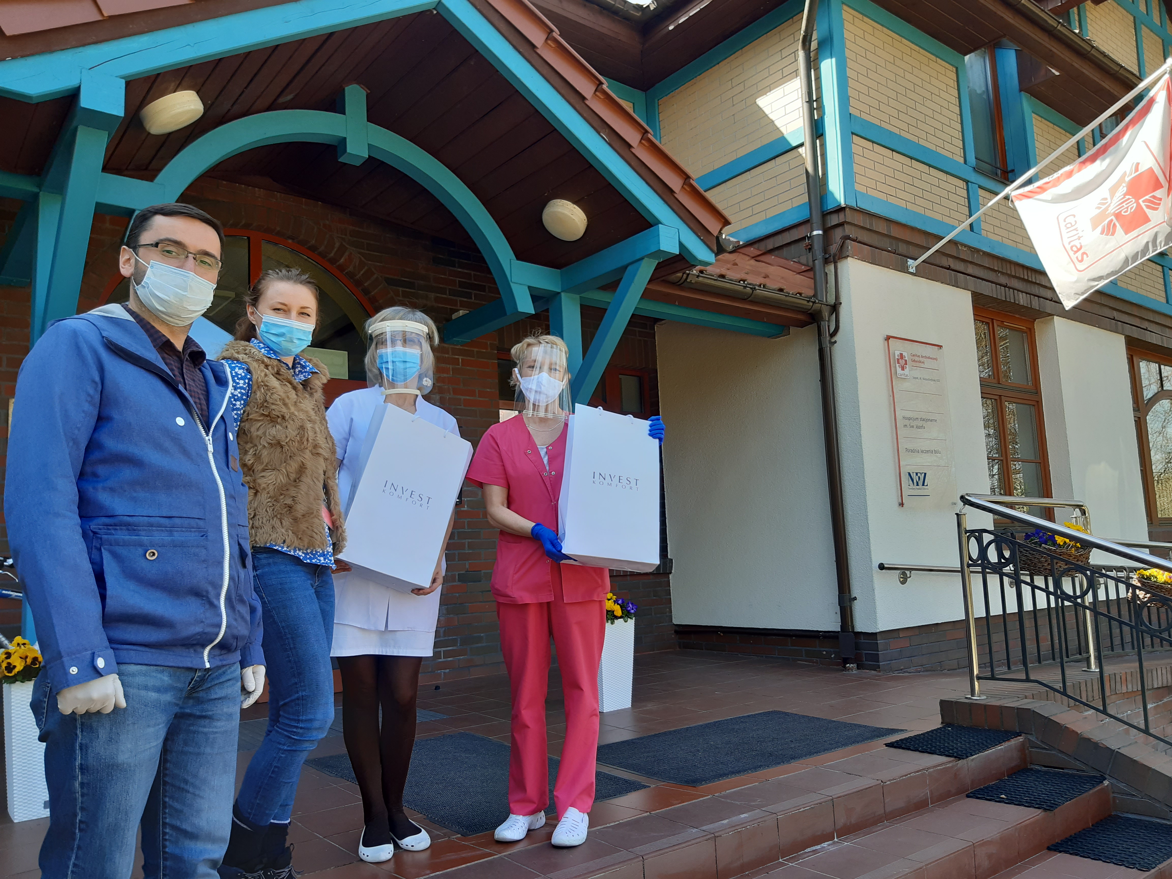 Było sobie spokojne popołudnie ku naszemu zaskoczeniu zajechał samochód w firmy INVEST KOMFORT. Przywieźli nam w upominki (dwie pełne torby): rękawiczki maseczki i żele dezynfekujące do rąk. Ta firma stworzyła projekt DZIŚ dla JUTRA, którego celem jest wspieranie szpitali, domów opieki społecznej, placówek medycznych i opiekuńczych w czasie panującej pandemii, która bardzo ogranicza codzienną bliskość. To sytuacja która wymusza angażowanie i wykorzystywanie więcej środków ochrony i bezpieczeństwa. Jesteśmy niezmiernie wdzięczni za dary, których małą cząstkę prezentujemy. Szerokim uśmiechem ?dziękujemy i pozdrawiamy ?(choć maseczki nam to troszkę utrudniają)