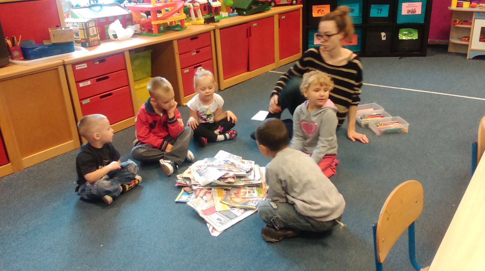Nasze Krasnale wzięły udział w drugiej cześci warsztatów recyklingowych. Tym razem w roli głównej wystąpiły gazety. Dzieci bawiły się papierwem gazetowym i wykonały z niego czapki.