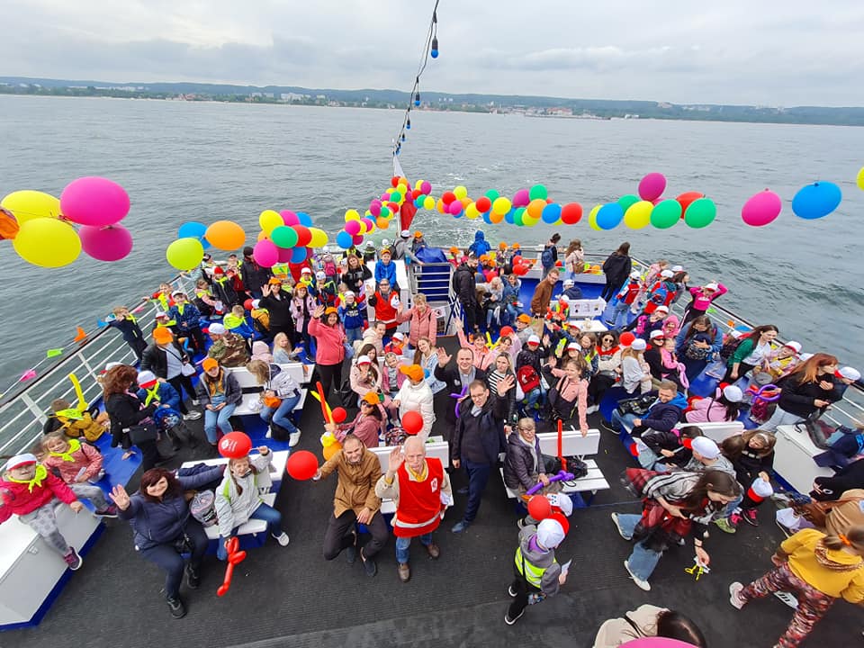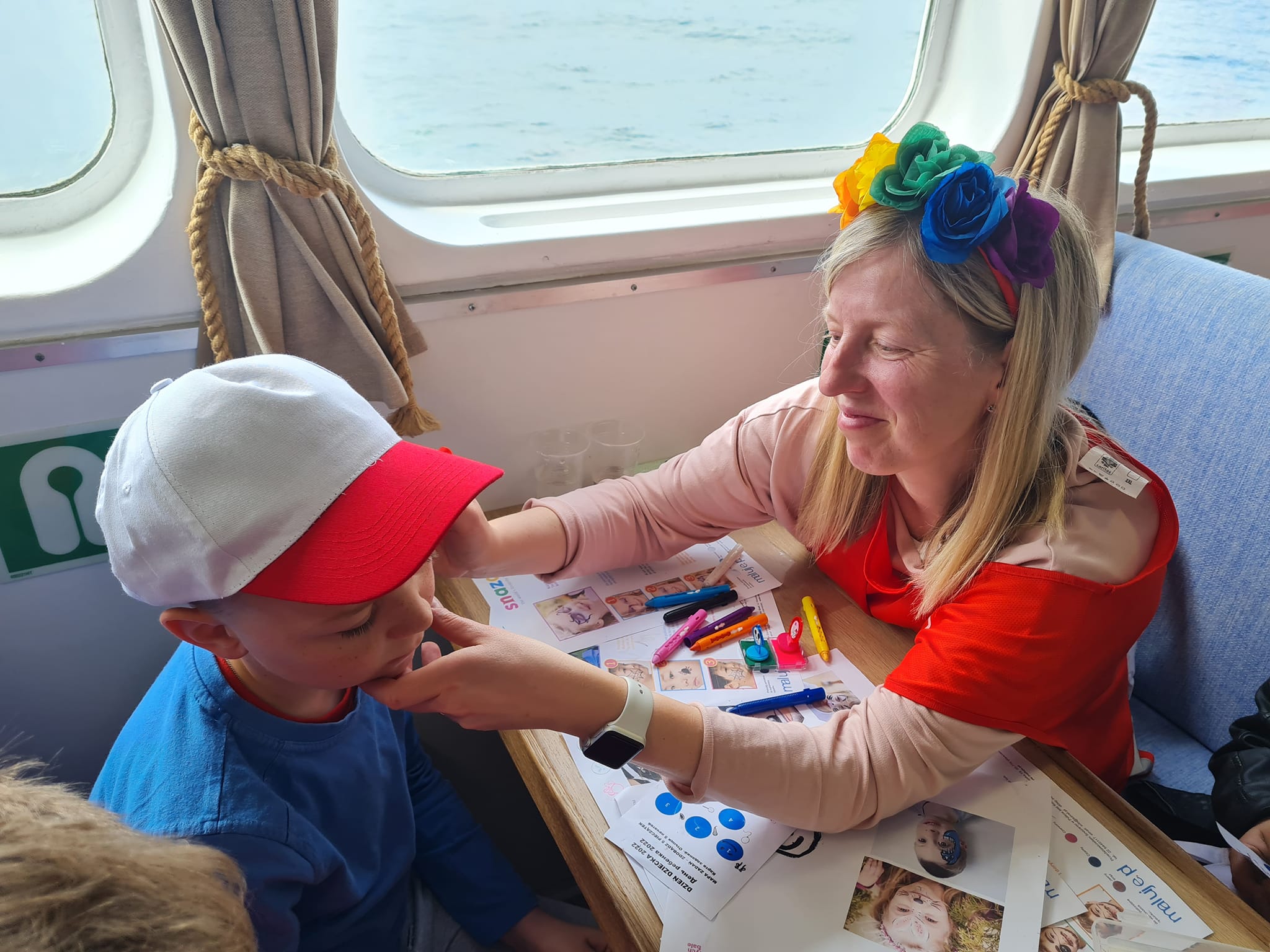W czasie rejsu na dzieci czekało wiele atrakcji oraz zadań do wykonania (malowanie twarzy, skręcanie balonów, wspólny śpiew i taniec).