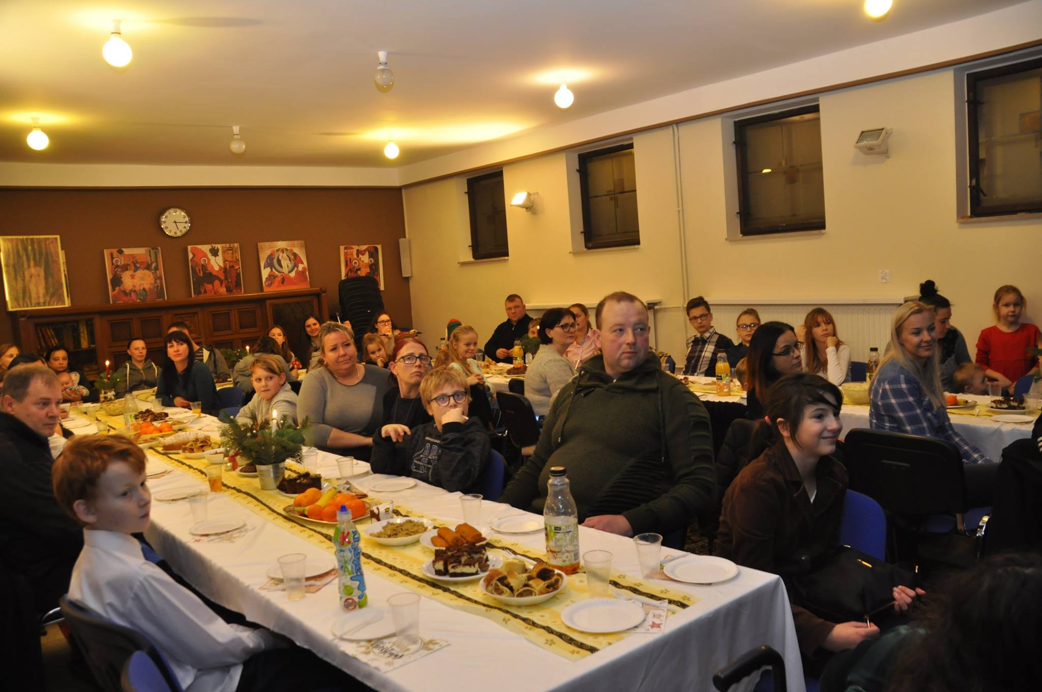 Postaraliśmy się, by tego dnia wszystko było przygotowane na przyjście naszych gości. Udekorowaliśmy salę i stoły, zewsząd płynęły dźwięki kolęd, które wprowadzały w dobry nastrój, a korytarz wypełniły zapachy świątecznych potraw. Dało się poczuć bożonarodzeniową atmosferę. Najbliższych wyczekiwaliśmy już na schodach. Każdy z nas wypatrywał znajomych twarzy rodziców i rodzeństwa, by wspólnie usiąść do stołu.