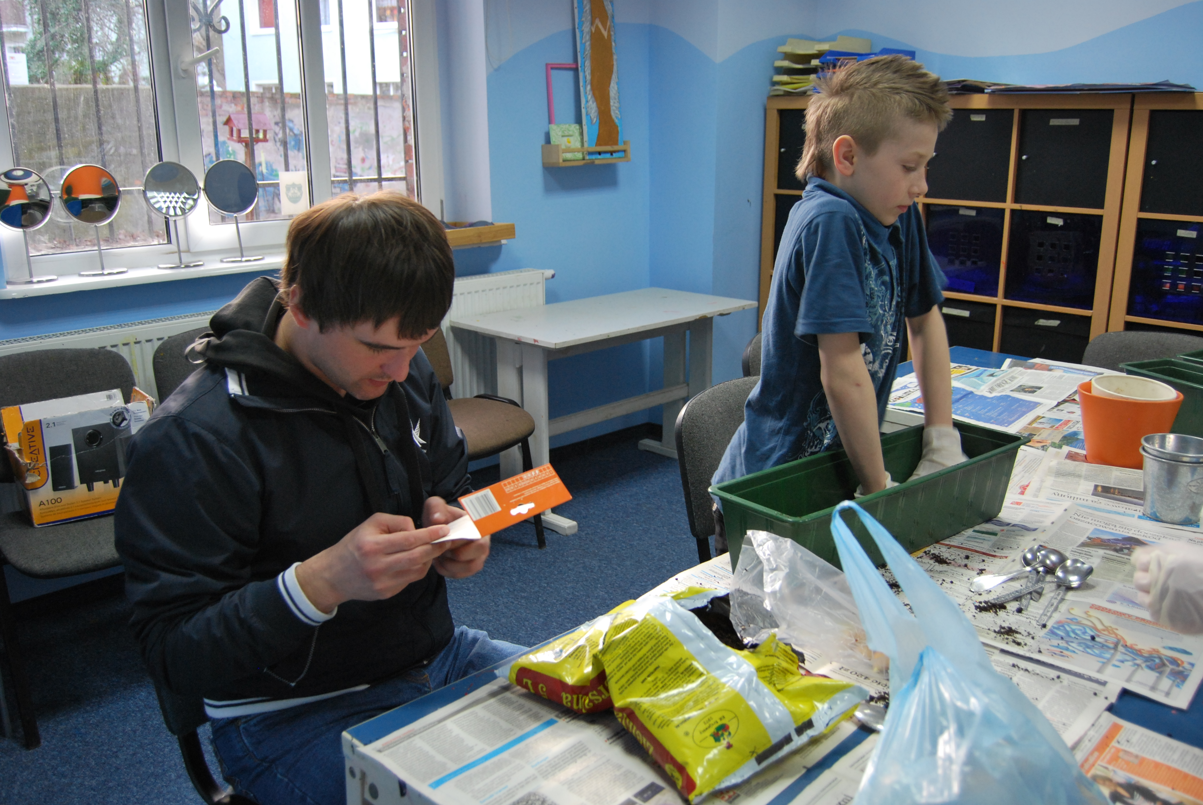 Co prawda, pogoda nieco się ostatnio popsuła, jednak nam to nie przeszkodziło w zadbaniu o narodziny wiosny w naszej placówce. W tym celu nasz wolontariusz Sasha zorgaznizował dla podopiecznych z grupy „Sparta” ziemię, cebulki kwiatów oraz nasionka ziół, które następnie wspólnymi siłami zasadziliśmy oraz posiadliśmy w donicach i kortytkach. Z niecierpliwością czekamy na efekty i pierwsze przebudzone kiełki, zerkające na nas z doniczek.