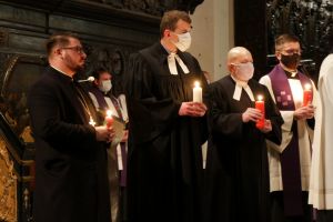 Nabożeństwu przewodniczył ks. Biskup Zbigniew Zieliński, który po odpaleniu pierwszej świecy na wieńcu adwentowym, przekazał również zapaloną świece Wigilijnego Dzieła Pomocy Dzieciom ks. Januszowi, dyrektorowi Caritas Archidiecezji Gdańskiej. Akcja ta ma wymiar ekumeniczny, dlatego zapalone świece odebrali z rąk księdza biskupa także przedstawiciele ewangelickiej Diakonii i prawosławnego Eleos.