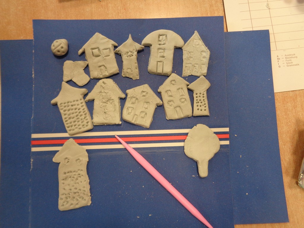 Na zajęciach plastycznych grupa „Anielska Kraina” wykonywała ostatnio miasto ze specjalnej masy plastycznej. Dzieci stworzyły domki, zwierzęta i inne ciekawe rzeczy które podpowiedziała im wyobraźnia. Gdy masa wyschła podopieczni mogli pomalować swoje prace i nadać im barwnego charakteru.
