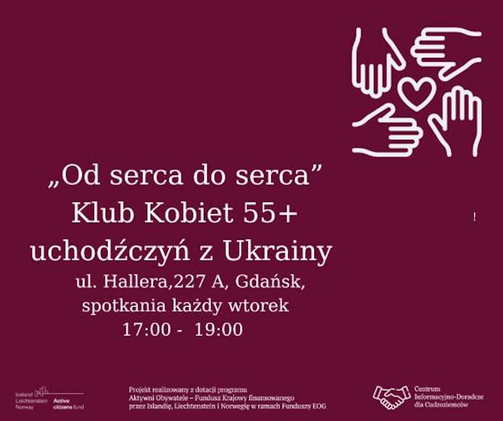 Klub kobiet „Od serca do serca” jest inicjatywą ukraińskich kobiet 55+, mieszkających w hostelu „Kvartira”. Jego celem i zadaniem jest pomoc w integracji w nowym środowisku i odnalezieniu swojego miejsca w polskiej rzeczywistości.