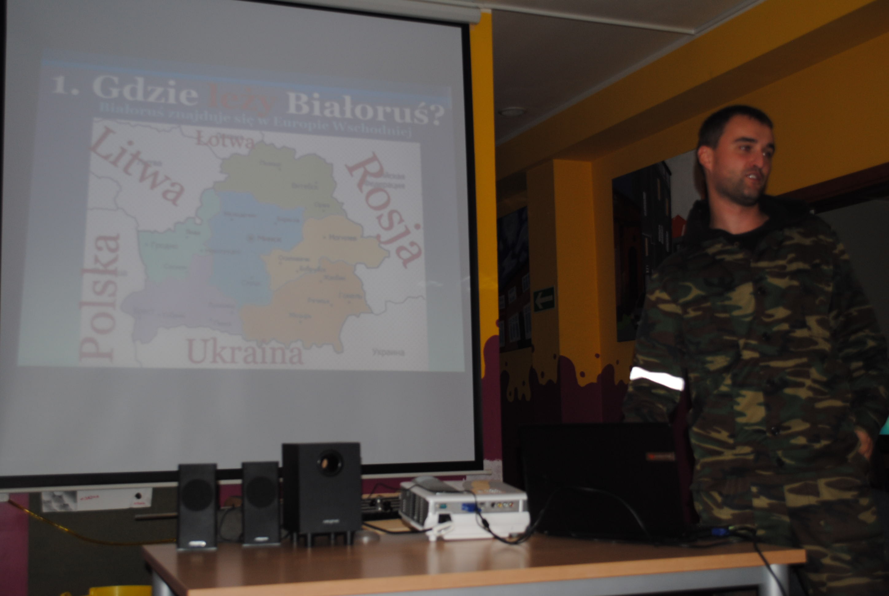 W poprzednim tygodniu nasz nowy wolontariusz z programu EVS, Sasha, postanowił odpowiedzieć na dociekliwe pytania młodzieży o Białoruś w formie prezentacji multimedialnej. Dzięki uważnemu wsłuchaniu się w pytania naszych podopiecznych prezentacja Sashy usatysfakcjonowała wszystkich. Grupa dowiedziała się m.in. jakie miasto jest stolicą Białorusi, ile państwo liczy mieszkańców, ile jezior zajmuje powierzchnię tego kraju oraz kto otrzymał tytuły miss Bielarus w ostatnich latach 🙂 Sasha nie zapomniał o tym, że nasi podopieczni uwielbiają Quizy i konkursy, dlatego w prezentacji było wiele niewiadomych, które trzeba było spróbować odgadnąć. Na koniec obejrzeliśmy piękny filmik o Białorusi, który ukazał zachwycającą białoruską przyrodę, jak i jej ciekawą infrastukturę.