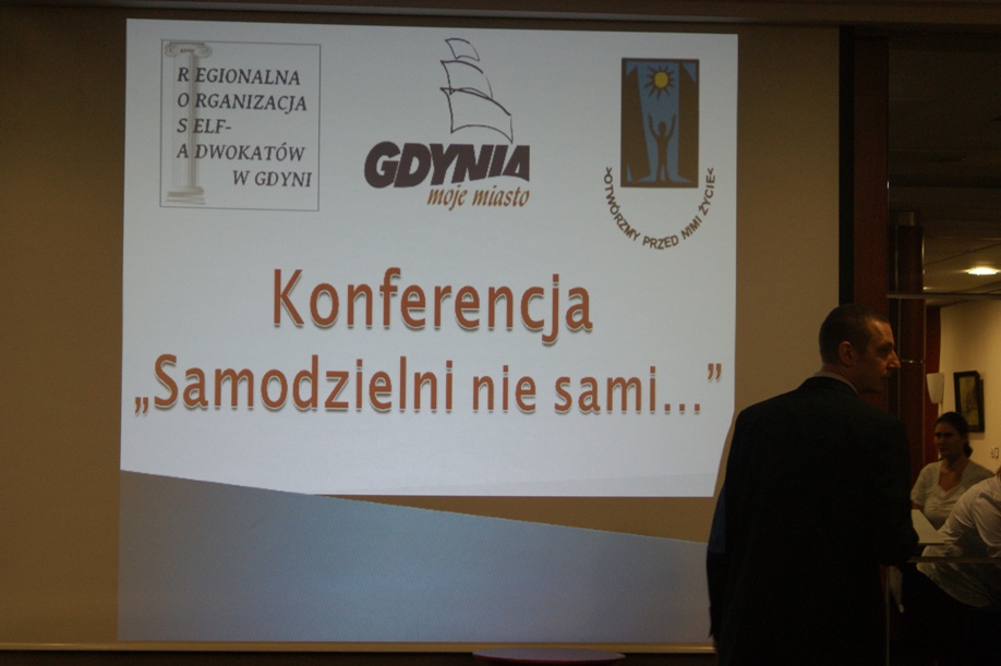 Dnia 9 czerwca 2011 roku w Hotelu Nadmorskim w Gdyni miała miejsce Konferencja „Samodzielni nie sami…” Zostaliśmy tam zaproszeni przez Państwowe Stowarzyszenie na Rzecz Osób Niepełnosprawnych Koło w Gdyni. Celem konferencji było uroczyste rozpoczęcie działalności przez Regionalną Organizację Self-adwokatów. Wśród założycieli jest także czworo uczestników WTZ przy Centrum Pomocowym Caritas im. Św. Ojca Pio w Gdyni. Przygotowania do tego spotkania rozpoczęły się już pod koniec 2010 roku cyklem cotygodniowych szkoleń mających przygotować uczestników Warsztatów Terapii Zajęciowej do jakże trudnego, publicznego wystąpienia. Uczyli się oni jak mówić o swoich często pomijanych problemach, w jaki sposób bezpośrednio występować w swoim imieniu. Stopniowo uczestnicy gdyńskich Warsztatów Terapii Zajęciowej oswajali się ze świadomością, że współtworzą coś bardzo ważnego – zainicjowanie Regionalnej Organizacji Self Adwokatów, ruchu osób niepełnosprawnych intelektualnie, chcących działać w swoim imieniu.