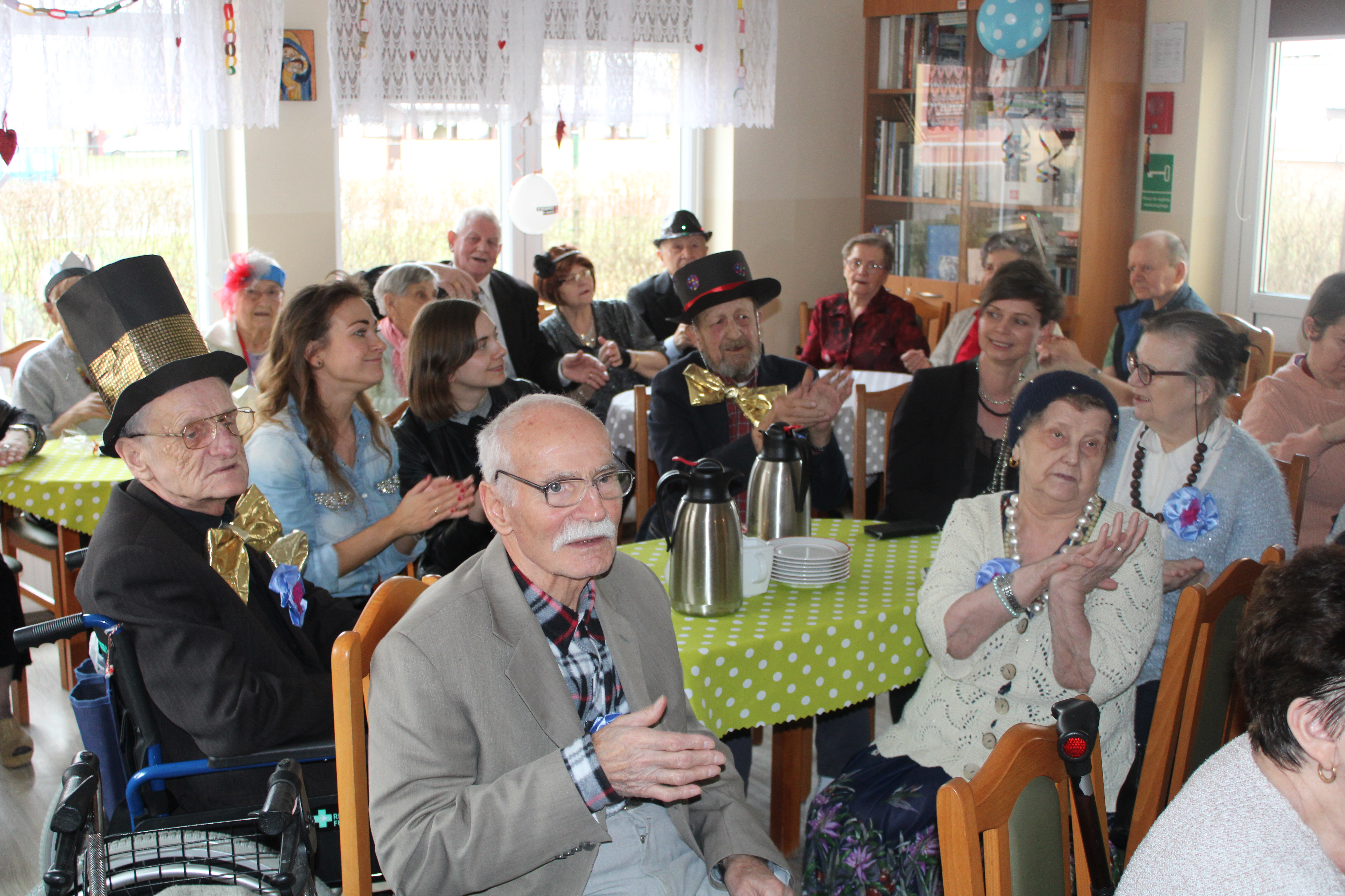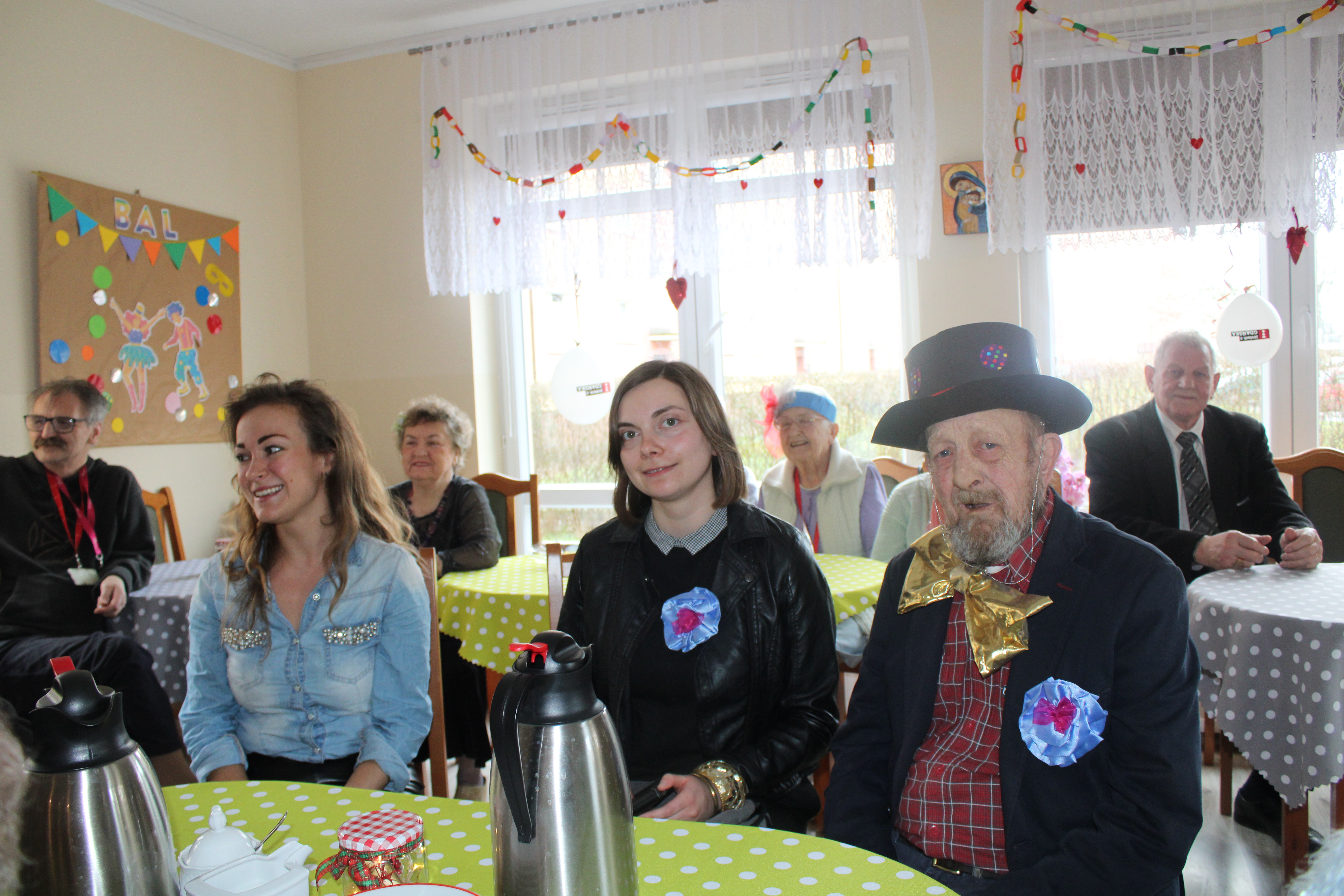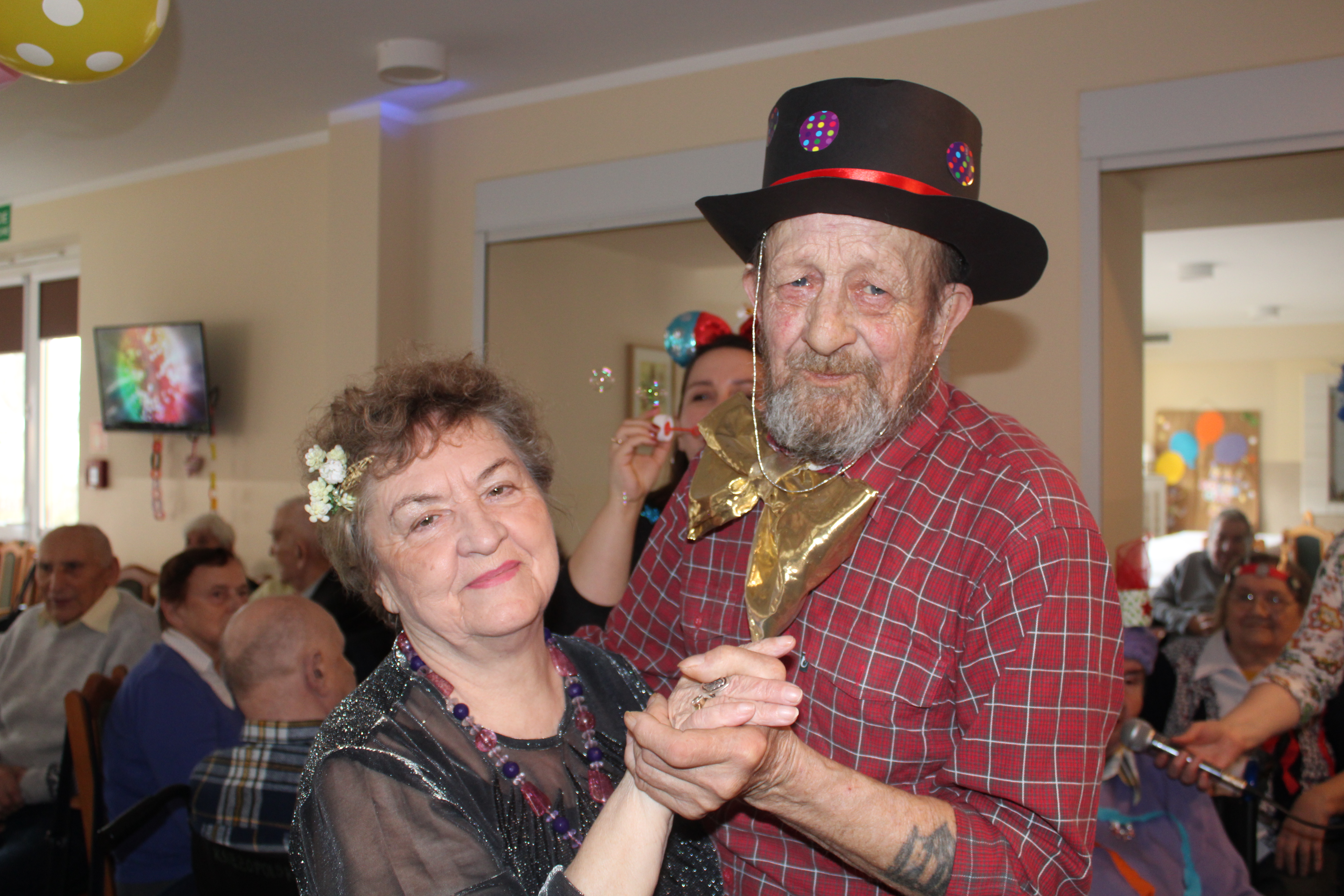 Podczas karnawału nie brakuje nam okazji do biesiadowania. Dlatego z wielką radością przyjęliśmy zaproszenie do naszych sąsiadów z DPS „Ostoja” ,gdzie mieliśmy okazję przenieść się w dyskotekowy, multikolorowy klimat. Było całe mnóstwo konkursów, a furorę zrobił nasz mieszkaniec Pan Maksymilian, który został wybrany na króla balu!