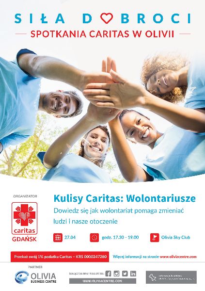 Przypominamy, że cały cykl spotkań „Kulisy Caritas” wspiera kampanię 1% dla Caritas Archidiecezji Gdańskiej, której celem jest przekazanie 1% podatku na wsparcie szeroko zakrojonych działań organizacji. Zapraszamy 27 kwietnia do Olivia Business Centre! Na spotkaniu dowiedzą się Państwo więcej!