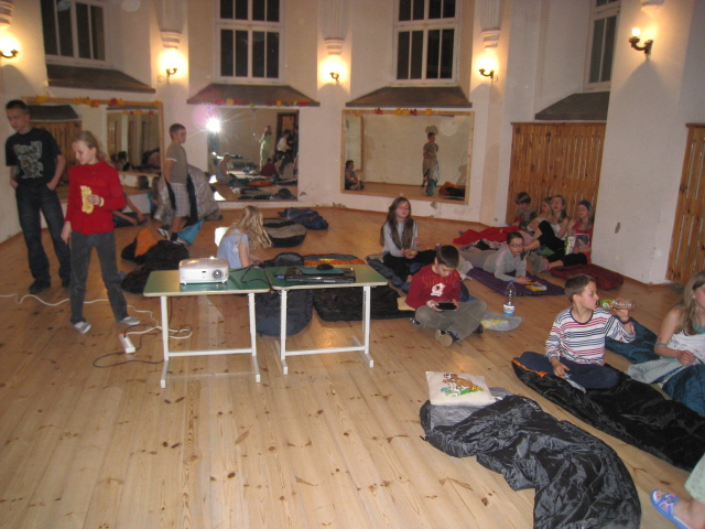23 kwietnia 2010 r. w godz.19.00-7.00 odbyło się w naszej szkole nocowanie. Uczestniczyli w nim uczniowie działający w Samorządzie Uczniowskim i Szkolnym Kole Caritas z klas II-VI (II d, III b, III d, IV a, IV b, IV c, V a, V b, V c, VI a, VI c) wraz z opiekunami, Panią Jolą Falbin, Panią Agnieszką Lampkowską i Panią KarolinąSzwochą.Wieczór rozpoczął się zakwaterowaniem uczestników w salach.