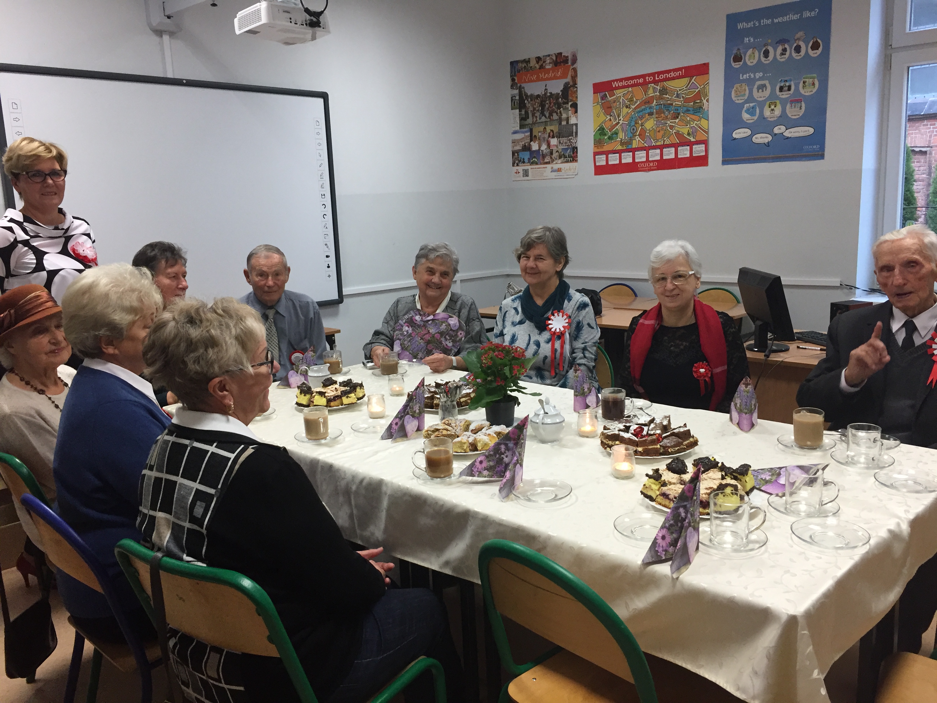 9 listopada 2018 r. odbyła się w naszej szkole wielka akademia z okazji 100 rocznicy Odzyskania Niepodległości. Przy tej okazji zaprosiliśmy do naszej szkoły starsze osoby z najbliższej okolicy. W sumie przybyło 12 osób. Każda otrzymała kotylion wykonany przez uczniów. Uroczystość składała się z dwóch części w związku z tym w przerwie przedstawienia przygotowaliśmy dla naszych seniorów kawę i słodki poczęstunek. W trakcie tego spotkania nasi goście otrzymali mały podarunek (kubek z cukierkami). Wszyscy byli zachwyceni spotkaniem i z ogromnym wzruszeniem wspominali swoje lata szkolne. Szczególnie oczarowane były panie, ponieważ cała uroczystość łącznie ze strojami odbyła się w klimacie lat 20 ubiegłego stulecia. Dużego przeżycia dostarczyło również wspólne odśpiewanie hymnu państwowego W czasie spotkania wpadł nam do głowy pomysł na następna inicjatywę dla seniorów z naszej okolicy. Będziemy wypożyczać książki z naszej szkolnej biblioteki osobom, które nie mogą wyjść samodzielnie z domu. Książki będą dostarczać i odbierać nasi wolontariusze. Nasza akcja spotkała się ze sporym zainteresowaniem. W związku z tym w grudniu będzie organizować w naszej szkole akcję „Podziel się książka z seniorem” mam nadzieję, że uda nam się w ten sposób wzbogacić księgozbiór o pozycje, które zainteresują osoby starsze. Może znacie kogoś kto likwiduję swoja biblioteczkę i nie wie co zrobić z książkami? chętnie się nimi zaopiekujemy.