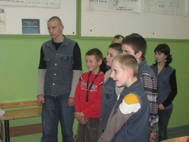 Marcin, Sylwia, Kornelia, Łukasz, Kacper, Piotr, Paweł i Alicja – nieco onieśmieleni pierwszym spotkaniem z gośćmi którzy przyjechali specjalnie do nich – byli jednak wpełni przygotowani i staneli na wysokości zadania.