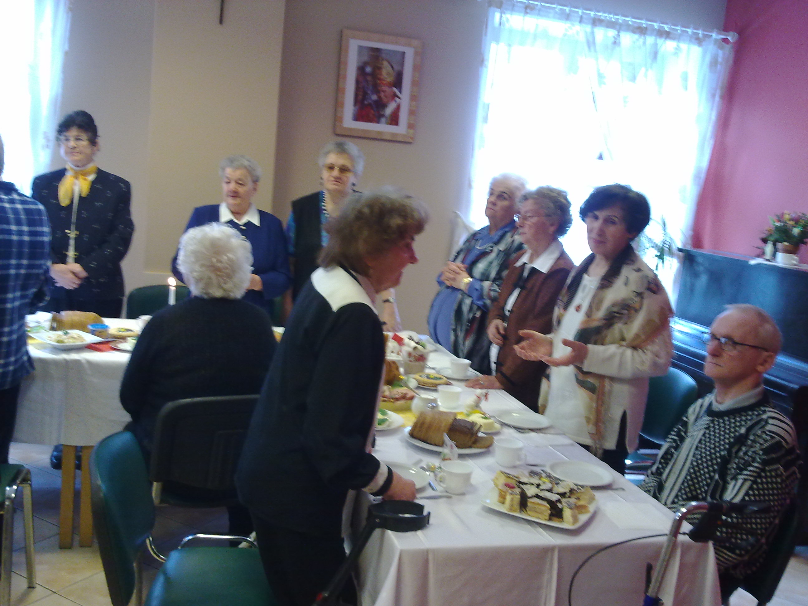 Jak w każde święta, tradycyjnie zebraliśmy się przy Wielkanocnym stole, aby wspólnie z pacnetami i personelem świętować Chrystusowe Zmartwychwstanie. Mszę św. rezurekcyjną odprawił nasz kapelan ks. Stanisław. Po eucharystii udaliśmy się do jadalni, gdzie zastaliśmy pięknie zastawione stoły, pełne świątecznych smakołyków. Błogosławieństwa pokarmów dokonał ks. Piotr Brzozowski, wicedyrektor Caritas. W rodzinnej atmosferze cieszyliśmy się świątecznym dnie, radością i nadzieją napełniającą nasze serca. Smakołyków i uroczystej atmosfery nie zabrakło także w dalszej część dnia.