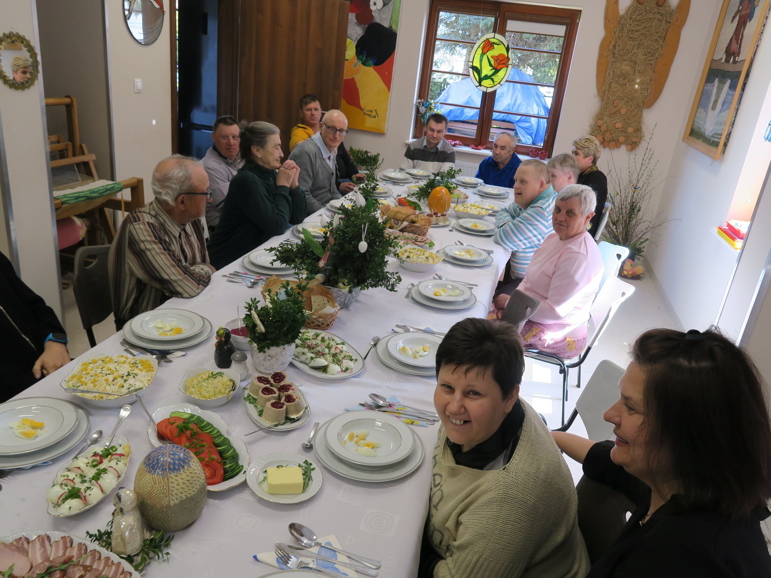 Aby tradycji stało się zadość, i w tym roku zorganizowane zostało w Centrum Caritas im. św. Matki Teresy z Kalkuty w Krzywym Kole uroczyste śniadanie wielkanocne. Tym razem jeszcze bardziej szczególne ze względu na gości z Ukrainy, od niedawna mieszkańców naszej wsi, z którymi mieliśmy okazję usiąść przy wspólnym stole.