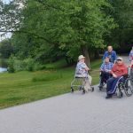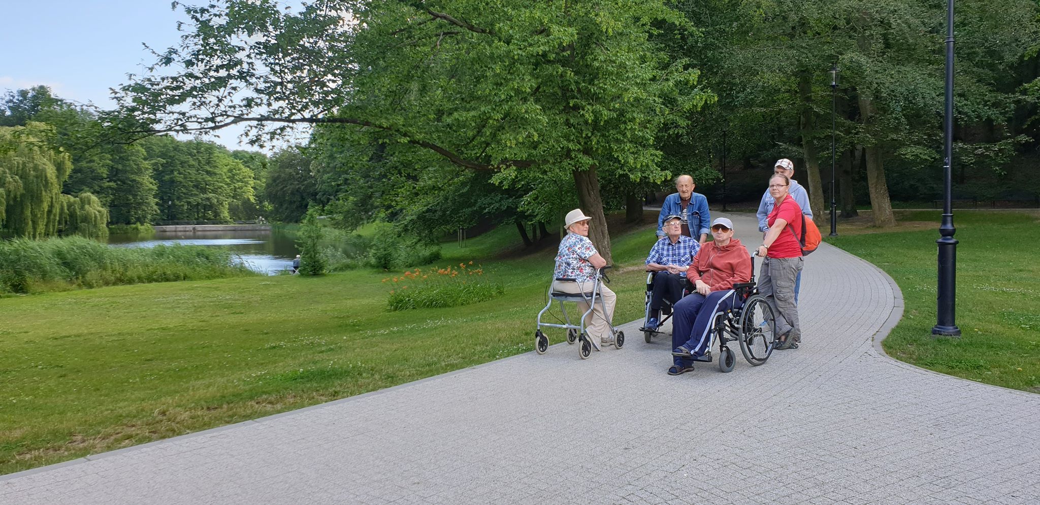 Pogoda dopisuje, więc aby nie marnować czasu na siedzenie w domu, wybraliśmy się w ramach projektu ,,SOW- Sieć Ośrodków Wsparcia Caritas dla osób z niepełnosprawnością” na spacer. Tym razem był to Park Oruński, otoczony malowniczymi wzgórzami, położony nad kanałem Raduni. W wieku XVIII zgodnie z obowiązująca wówczas modą plan parku stał się jakby mniej regularny, bardziej asymetryczny i swobodny. Na znaczeniu zyskują wspomniane wcześniej, przemyślnie usytuowane, punkty widokowe. Na przestronnej i nasłonecznionej polanie między stawami urządzony zostaje wielki, jak na owe czasy, ogród botaniczny ze szklarnią, w której hodowano egzotyczne rośliny (m.in. ananasy, cytrusy, a nawet kawę). To niestety były ostatnie lata świetności. Wojska napoleońskie, które przetoczyły się tu na początku kolejnego stulecia, doprowadziły park do ruiny. To, co powstało tu później, to już tylko okrojona namiastka. Odwiedzający w dwudziestoleciu międzywojennym ogród, gdański poeta Hans Georg Siegler określa go mianem rajskiego Edenu.