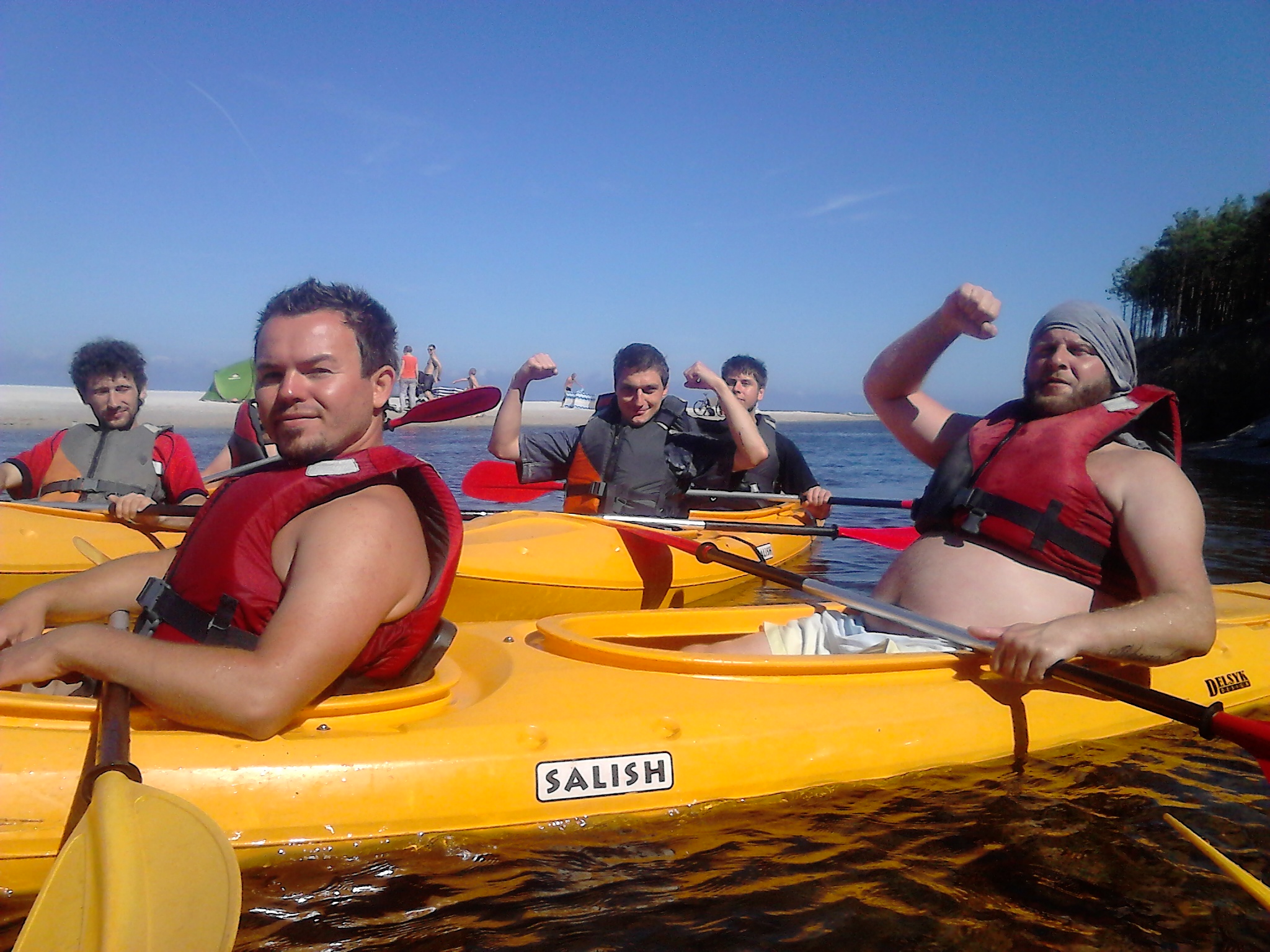 Druga Szansa na spływie na trasie Żarnowiec – Dębki. Jak widać, udział w projekcie to nie tylko działania na Sopockich Błoniach, ale także dobra zabawa podczas wspólnych aktywności.