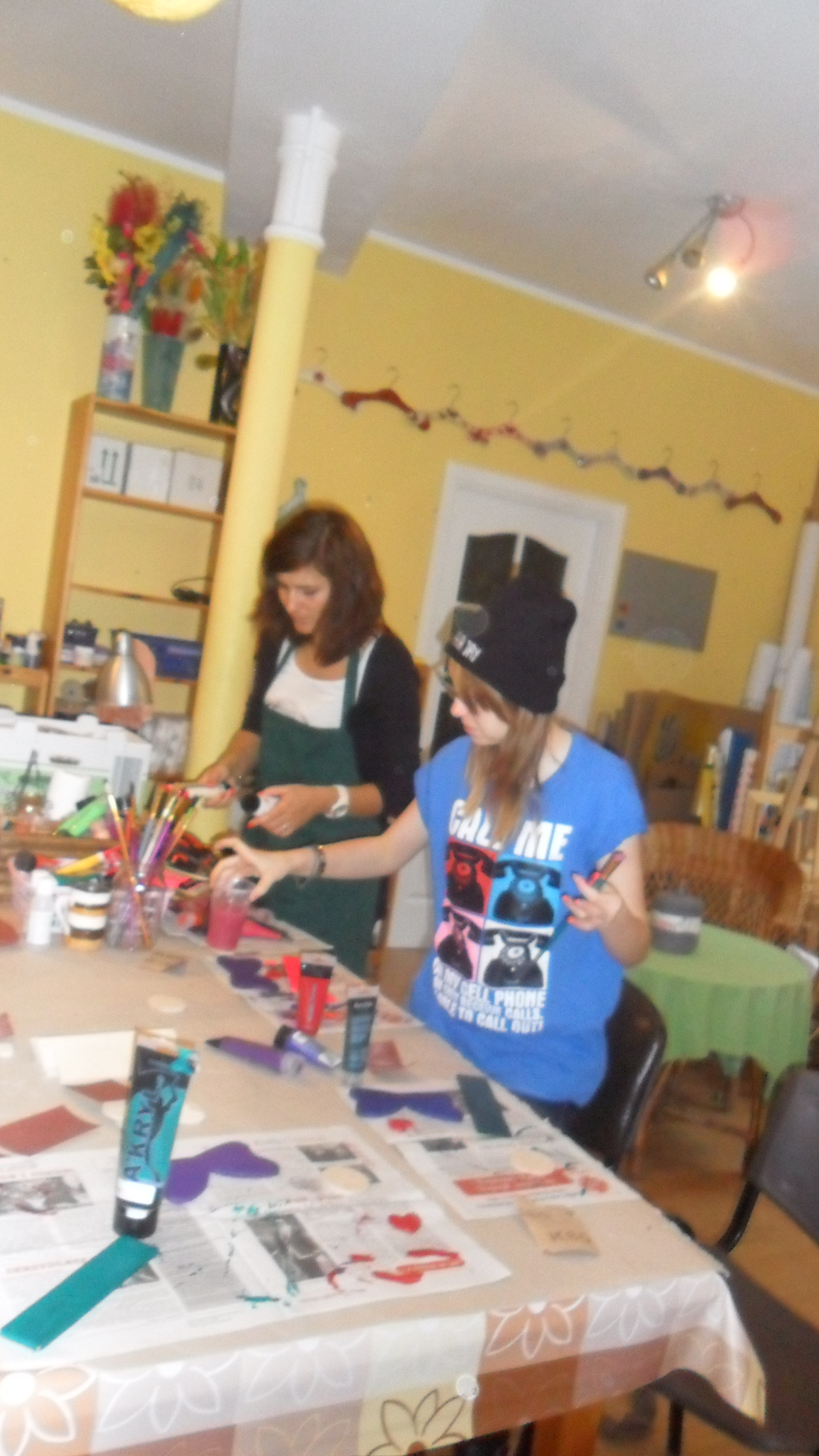 Naszą placówkę w Łapinie odwiedzili uczniowie klasy II z Gimnazjum w Kolbudach. Goście zwiedzili pracownie i dowiedzieli się co się u nas robi i jak pracuje. Dzieci miały możliwość zrobić mały witrażyk, miskę ceramiczną, aniołka ze sklejki ozdbiony metodą decoupage oraz wypalali w drewnie. Uczniowie, którzy zgłosili się do kuchni dydaktycznej,pod okiem uczestników zrobili pizze, którą poczęstowali swoich kolegów.