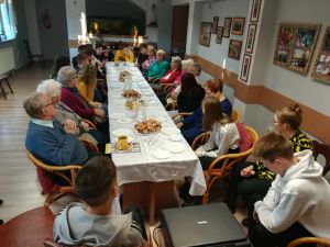 Dla młodzieży to była prawdziwa lekcja historii, której nie da się wyczytać w podręczniku szkolnym. Dla seniorów zaś możliwość nauki nowego obowiązującego słownictwa i skrótów językowych. Przy słodkim poczęstunku miło upłynął czas:)