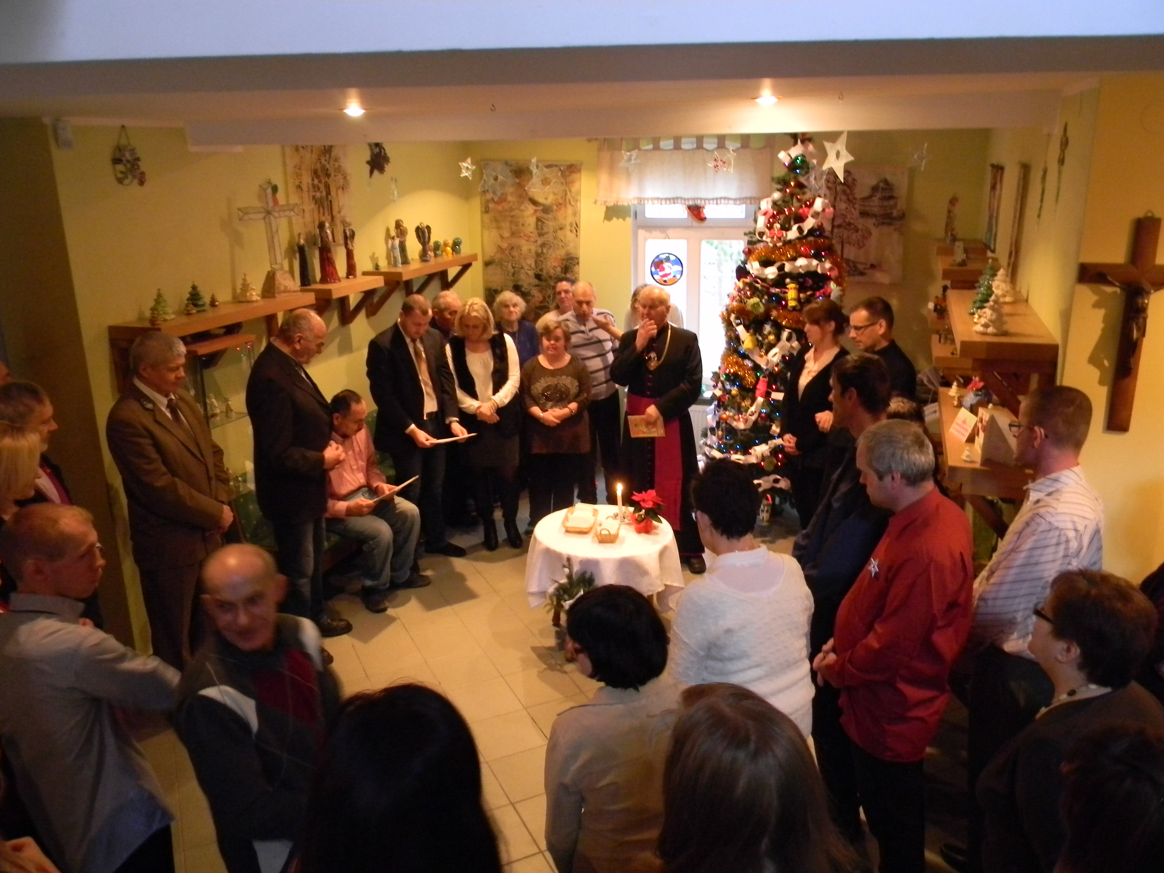 Wczoraj w warsztacie w Łapinie odbyło się spotkanie wigilijne, na którym obecni byli rodzice uczestników WTZ, Ks. Dziekan Józef Nowak, Ks. Tomasz Kosewski zastępca Dyrektora Caritas Archidiecezji Gdańskiej, Pan Tomasz Kroll sołtys Wsi Łapino, Pan Zdzisław Leszkowski radny Gminy Kolbudy, Pan Wiesław Rusiecki Przewodniczący Rady Gminy, Pan Andrzej Gajowniczek Nadleśniczy z Nadleśnictwa Kolbudy oraz przedstawiciele Urzędu Gminy Kolbudy oraz GOPS w Kolbudach. Spotkanie rozpoczęliśmy odczytaniem fragmentu Ewangelii św. Łukasza, pobłogosławieniem opłatka i odśpiewaniem kolędy. Po oficjalnych przemówieniach wszyscy podzielili się opłatkiem wigilijnym i poczęstowali potrawami wigilijnymi.