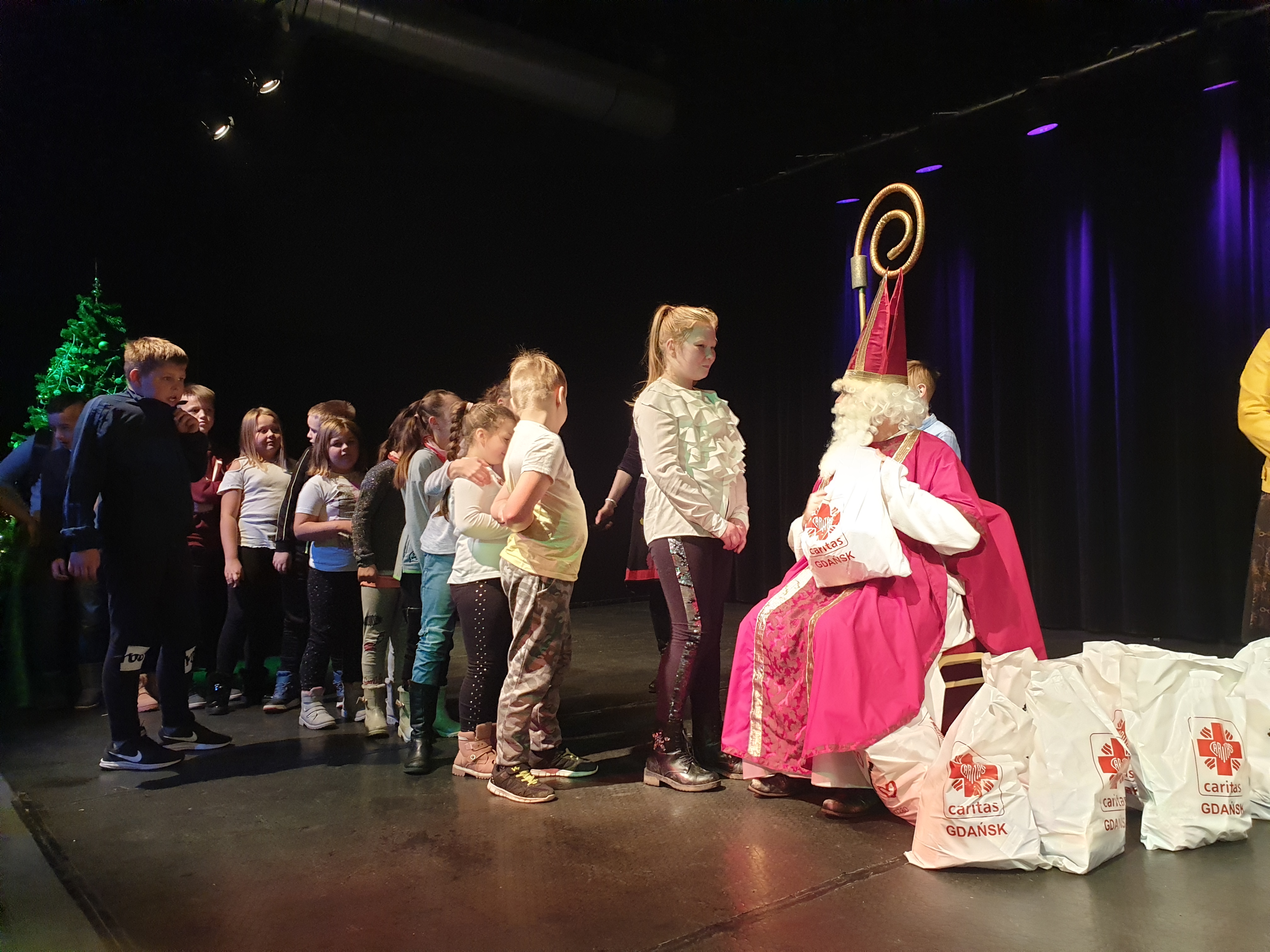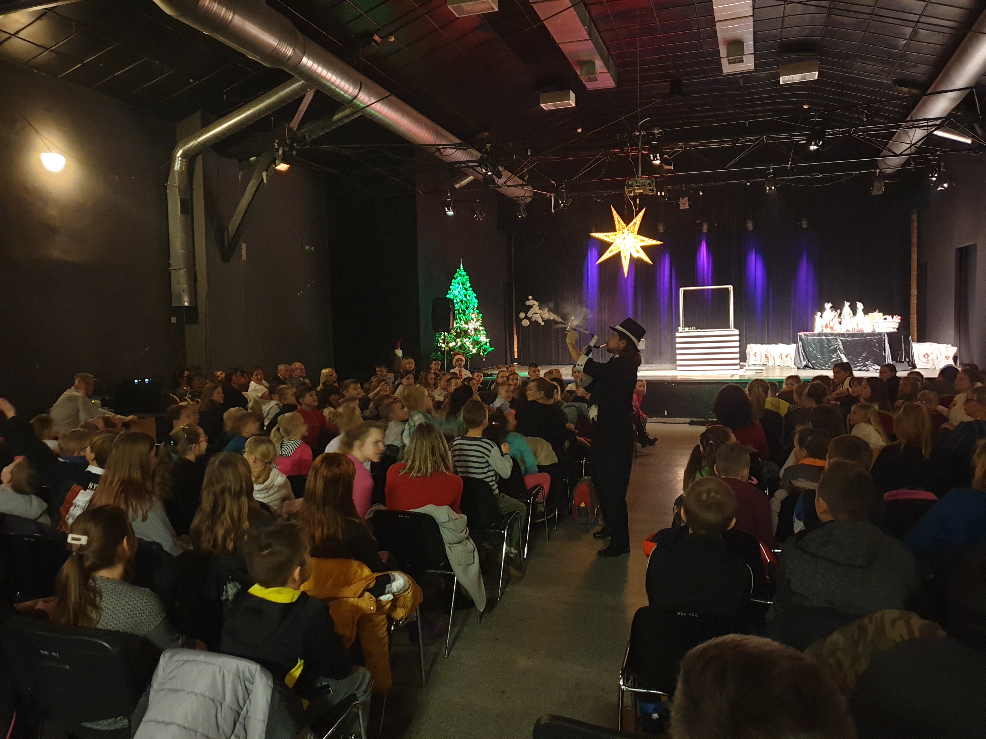 W sobotę w Stacji Orunia w Gdańsku odbyło się wyjątkowe spotkanie z udziałem wszystkich dzieci ze świetlic żukowskich – wyjątkowe, bo świąteczne. Jak zawsze przy tej okazji nie zabrakło atrakcji dla naszych małych gości. Było przedstawienie, spotkanie ze Świętym Mikołajem, no i prezenty! Ale po kolei… Na początku przenieśliśmy się w niesamowity świat bańkowego magika. Mogliśmy zobaczyć jakie cuda można zrobić z baniek przy wykorzystaniu prostych przedmiotów. Potem Ksiądz Piotr wprowadził nas w atmosferę Świąt Bożego Narodzenia odczytując fragment z Ewangelii Św. Łukasza. Chwilę później rozległy się charakterystyczne dzwonki i na sali pojawił się Święty Mikołaj wzbudzając swoim przybyciem ogromną radość wszystkich dzieci – i nie tylko. Okazało się, że miał prezenty również dla dorosłych. Nasi goście otrzymali drobne upominki przygotowane własnoręcznie przez uczestników świetlic. Potem przyszła kolej na wychowawców, o których Mikołaj też oczywiście pamiętał. Zanim paczki otrzymali nasi najmłodsi goście Mikołaj opowiedział im trochę o zwyczajach świątecznych w różnych krajach, bo nie wszędzie Boże Narodzenie jest świętowane tak samo jak u nas. Przepytał też dokładnie wszystkich czy na pewno byli grzeczni w ciągu ostatniego roku i dopiero jak każdy indywidualnie zobowiązał się do poprawy przyszedł czas na prezenty.