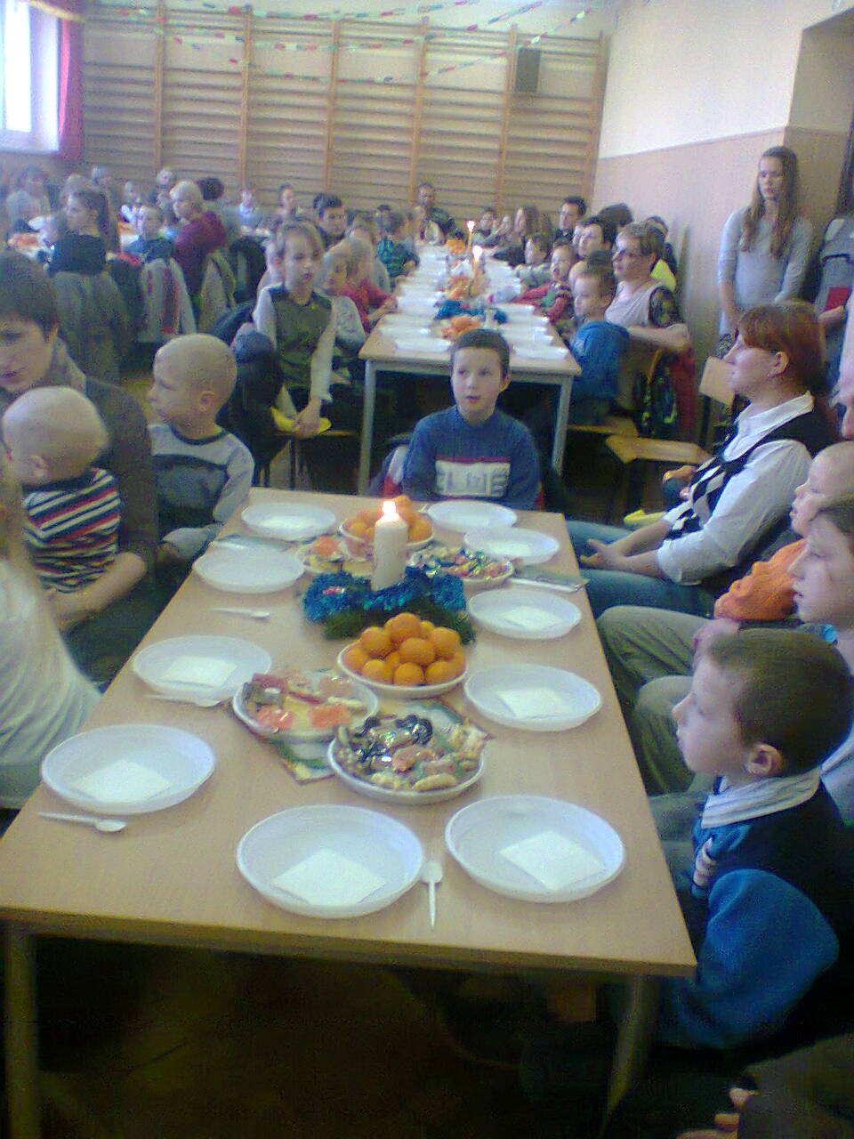 Parafialny Zespół Caritas przy Parafii Matki Boskiej Królowej Polski w Łebnie od roku 1998 organizuje spotkania wigilijno-opłatkowe dla dzieci z rodzin wielodzietnych i będących w potrzebie. W tym roku spotkanie odbyło się w sali gimnastycznej Szkoły Podstawowe w Łebnie w niedzielę 21.12.2014 roku. Spotkanie rozpoczęło się czytaniem przez panią katechetkę wybranych tekstów o Bożym Narodzeniu, które były przeplatane śpiewem kolęd przez wszystkich zgromadzonych przy muzyce gitary, na której grał nasz kanonik ks. proboszcz Mieczysława Guzmann. Następnie wszyscy składaliśmy sobie życzenia świąteczne i dzieliliśmy się opłatkiem. Dzieci bardzo chętnie brały udział w konkursie przygotowanym przez panią katechetkę o tematyce Bożonarodzeniowej – nagrodą były zabawki i artykuły szkolne darowane przez dobrych ludzi. Na zakończenie przybył „Gwiazdor” i wręczył wszystkim dzieciom paczki świąteczne. Dziękujemy wszystkim ofiarodawcom za dar zabawek i artykułów szkolnych oraz owoców i słodyczy, bo dzięki temu przygotowaliśmy słodki poczęstunek.
