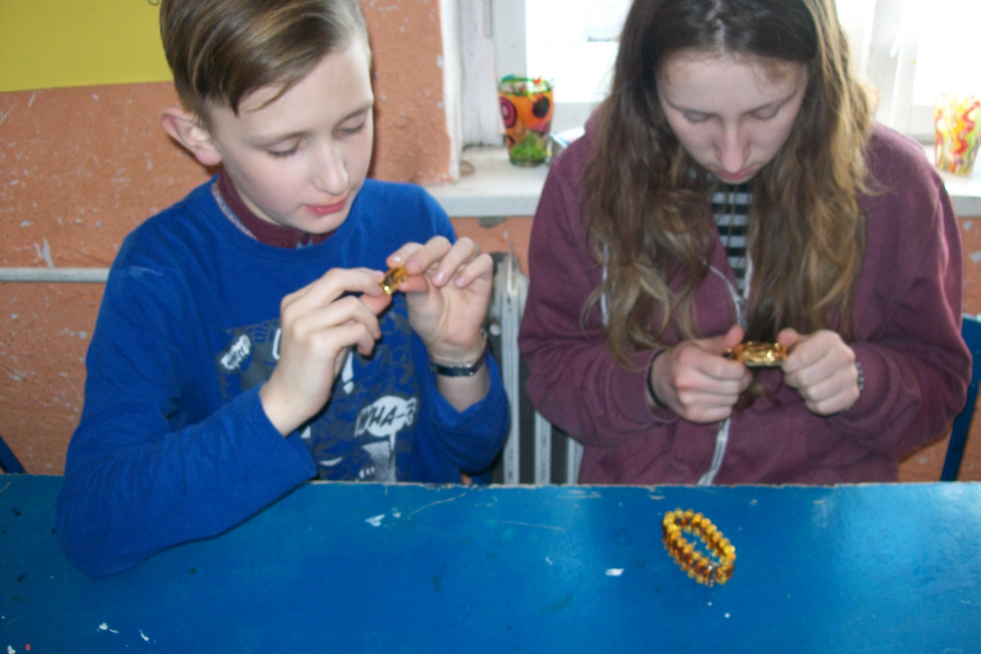 Dzięki naszej nowej wolontariuszce, Magdzie, mogliśmy się zapoznać z zawodem jubilera. Zaproszony przez Magdę gość miał specjalizację bursztyniarza. Opowiedział nam mnóstwo interesujących rzeczy na temat pochodzenia tej żywicy, jej historii, zastosowania, również w medycynie. Dowiedzieliśmy się, że największym rynkiem zbytu są obecnie Chiny i kraje muzułmańskie, a znacznie mniejszym kraje Europy zachodniej. Pokazał nam kilka swoich wyrobów, a także zdjęcia różnych popularnych i bardzo drogich wyrobów z bursztynu, znanych na cały świat. O swojej pracy opowiadał z wielką pasją i zaangażowaniem. To było dla nas bardzo interesujące, mogliśmy zapoznać się z prawdziwym rzemieślniczym zawodem!