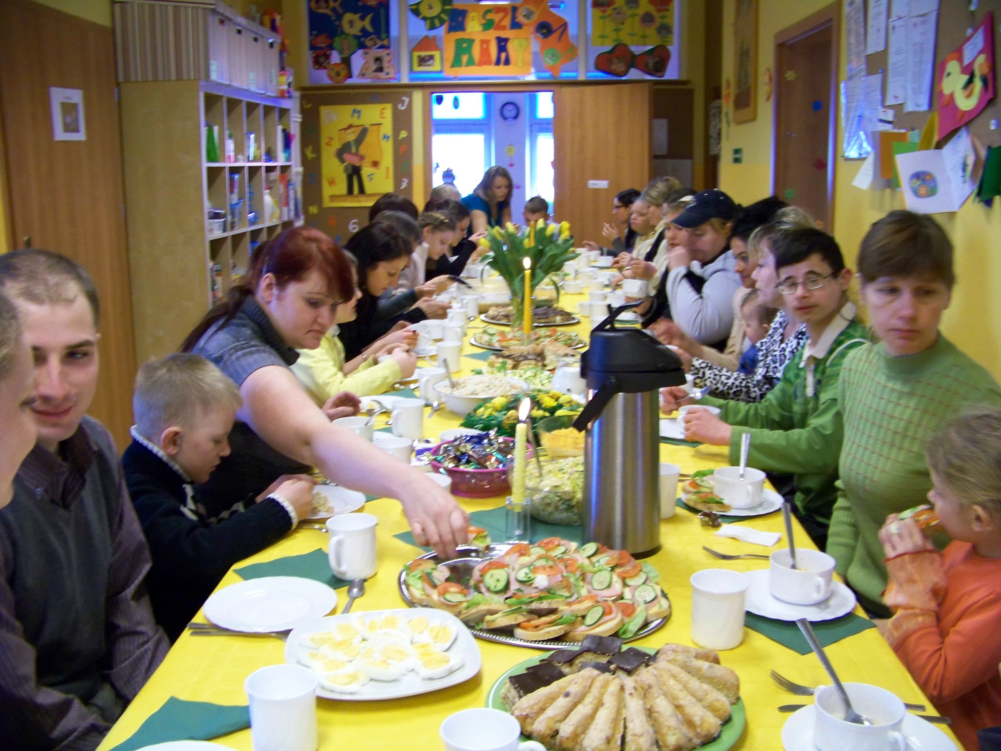Święta Zmartwychwstania Pańskiego to wyjątkowy okres w roku. Towarzyszy im rozkwitająca do życia przyroda i wiosenny, słoneczny optymizm. Trwająca Oktawa Wielkiej Nocy była doskonałą okazją do zatrzymania tego radosnego klimatu i zorganizowania w Ośrodku Rehabilitacyjno-Edukacyjno-Wychowawczym w Trąbkach Wielkich spotkania wielkanocnego. Poprzedziła je msza św. w intencji zdrowia ks. prałata Ireneusza Bradtke. Po jej zakończeniu podopieczni placówki, ich rodzice, goście oraz pracownicy zasiedli do stołu, na którym znalazł się m.in. żurek, jajka w różnych postaciach, sałatki wiosenne, a także wielkanocna babka. Nie zabrakło też niespodzianki dla dzieci. Były nią słodkie paczuszki, które w ośrodku zostawił wielkanocny zajączek.