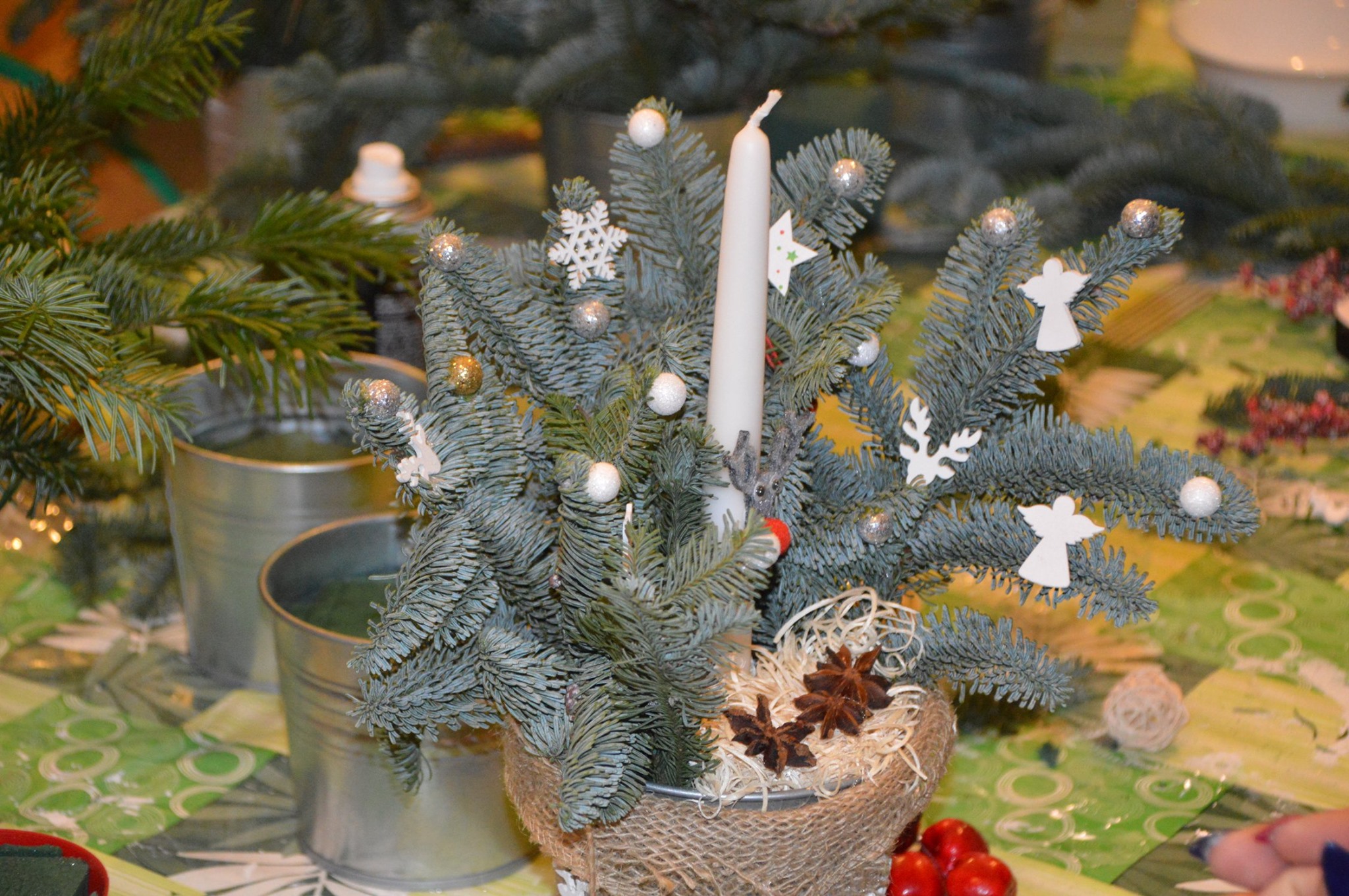 Nie zabrakło również zajęć stricte dla rodziców. Oni również mieli okazję pokazania swoich możliwości. Na tych warsztatach motywem przewodnim były stroiki tworzone z żywych gałązek, a dla dalszych inwencji twórczych nie było już granic.