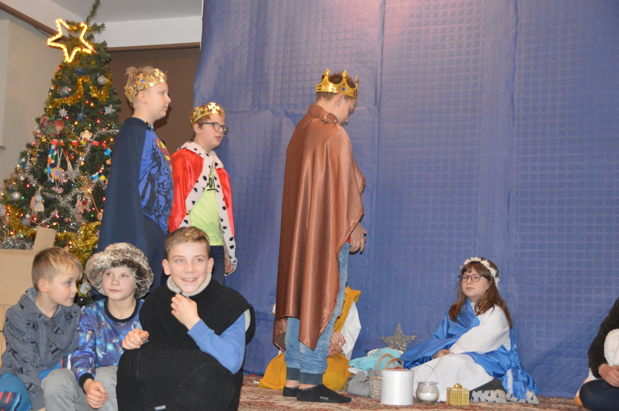 W końcu nadszedł dzień wigilii, na który tak długo wspólnie się przygotowywaliśmy. Dzieci fantastycznie spisały się w swoich jasełkowych rolach. Rodzice byli dumni, a my zadowolone. Na stołach nie zabrakło dobrego jedzenia, a św. Mikołaj nie zapomniał o naszych świetlicowych pociechach i zostawił dla każdego z nich prezent pod choinką. Mamy nadzieję, że dla każdej z osób, która mogła zagościć przy wigilijnym stole był to miło spędzony czas.