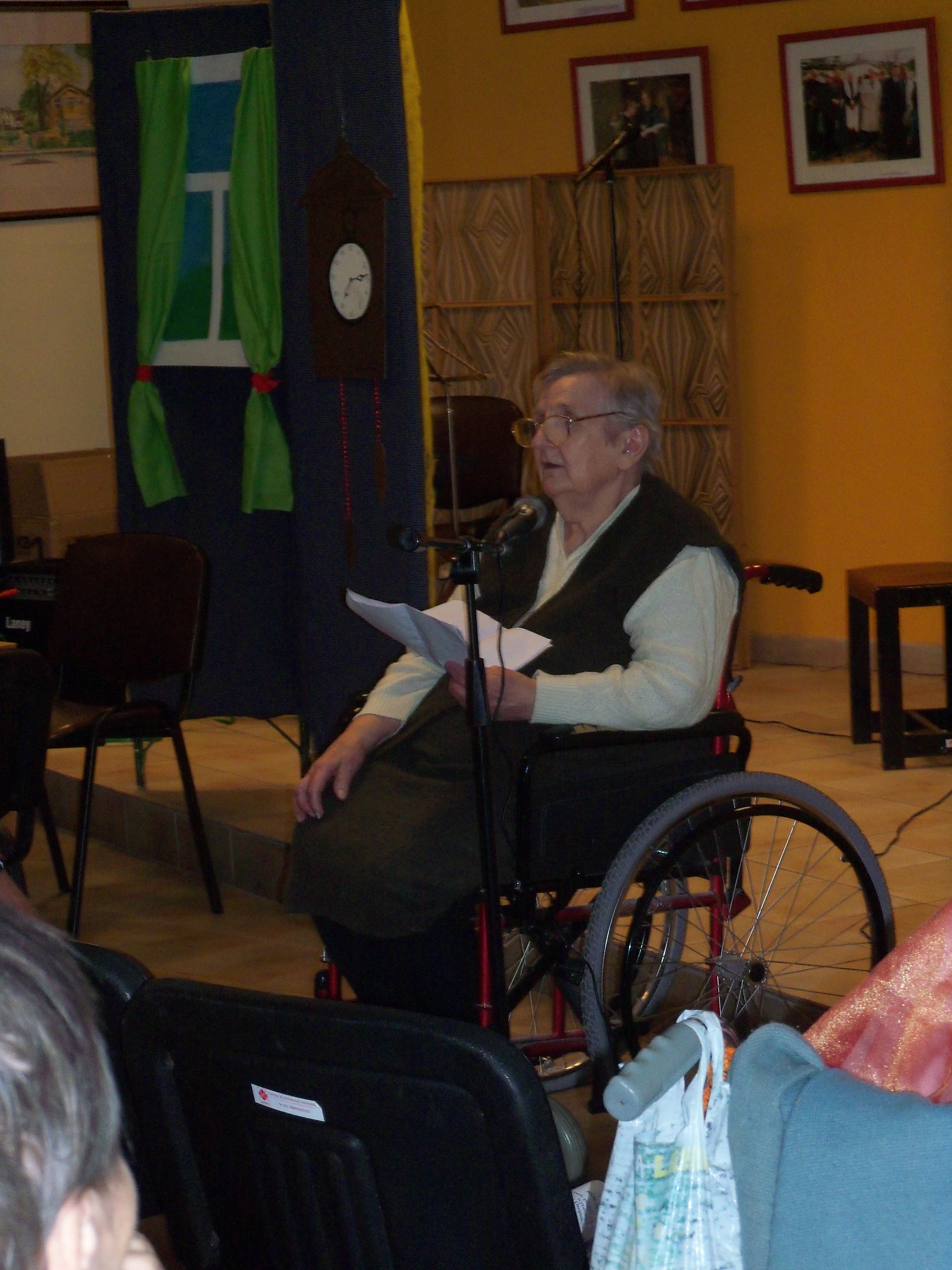 Na początku wystąpił Pan Kazimierz z repertuarem znanych, polskich piosenek. Następnie został zaprezentowany spektakl teatralny, przygotowany przez naszych mieszkańców. Po przedstawieniu Pani Halina i wyrecytowała wiersz „Pierwiosnek” Adama Mickiewicza oraz własny utwór pod tytułem „Życzenia”.