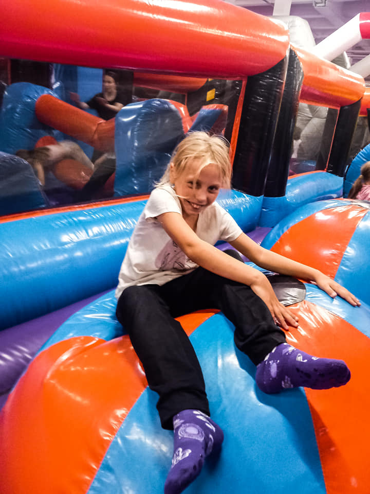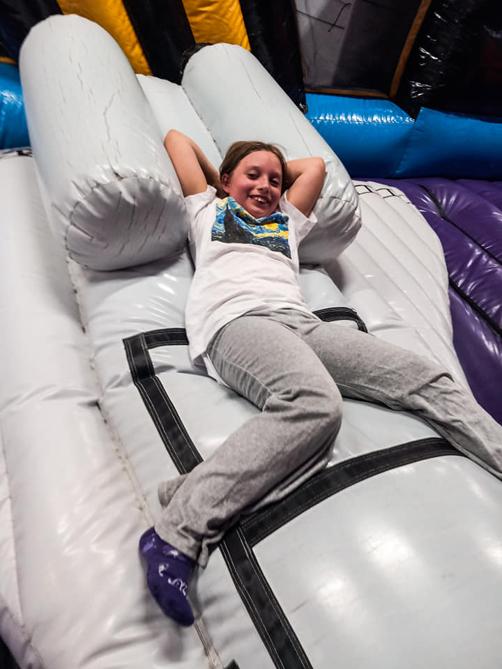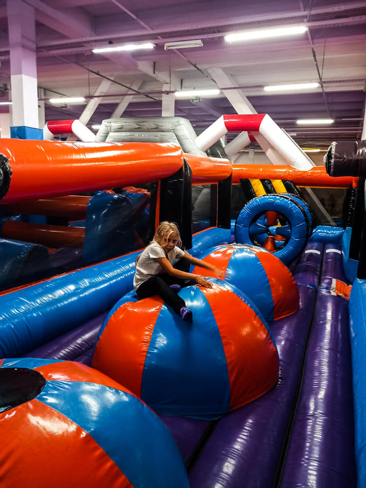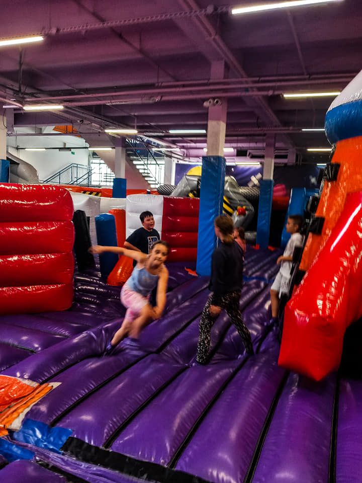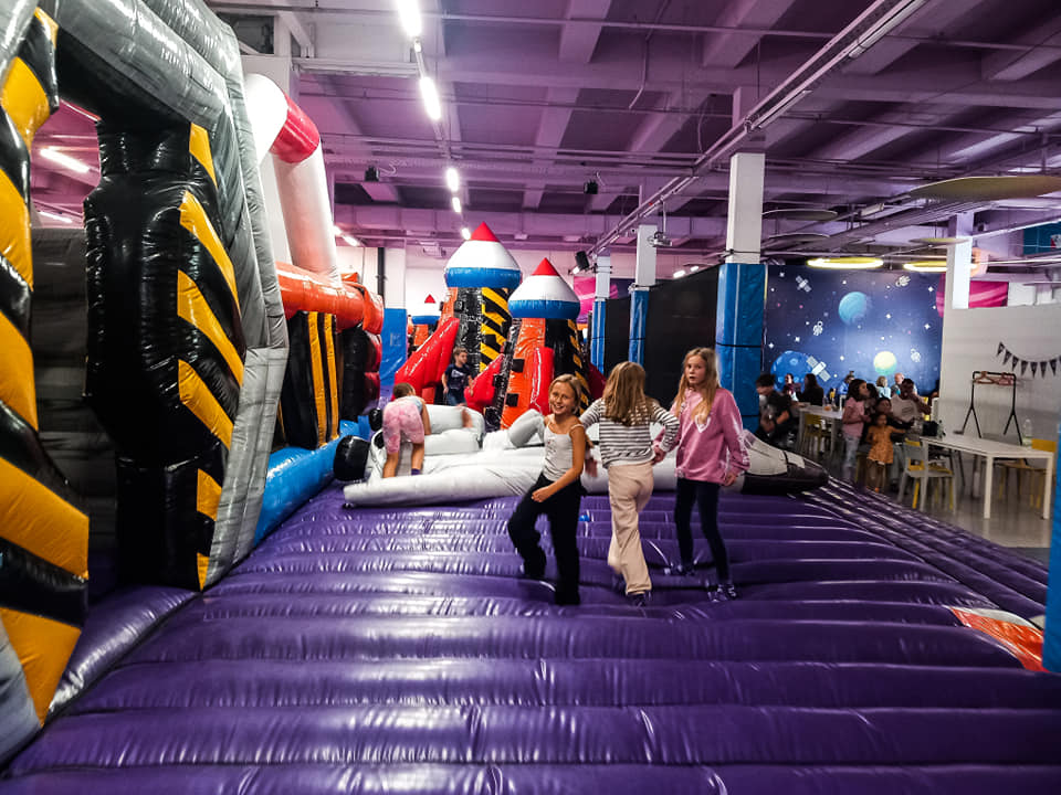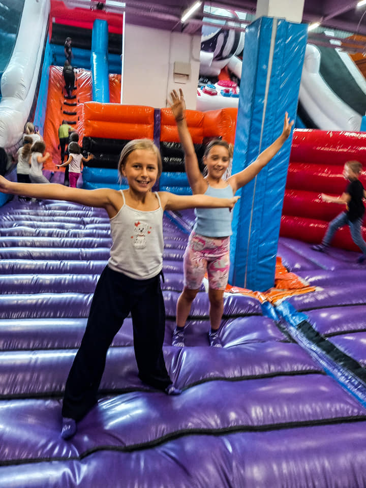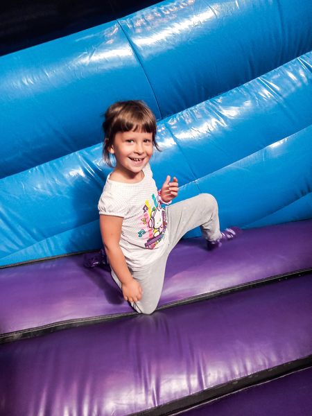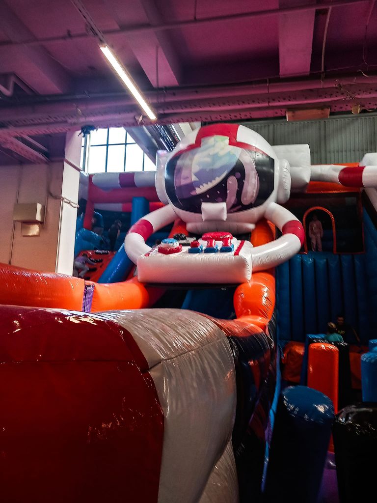 Air Space to super miejsce na świetną i bezpieczną zabawę, na mnóstwie dmuchańcow. Zaopatrzeni w kosmiczne skarpetki polecieliśmy skakać, zjeżdżać i biegać. Największe obawy, ale jak się później okazało, największą frajdę, przyniósł nam skok z 3 metrów wprost na wielką dmuchaną poduchę. Okazało się, że w berka czy w chowanego też można się tam z powodzeniem pobawić. Próbowaliście kiedyś biegać po dmuchańcu? Ma się wrażenie, jakby się znalazło w stanie nieważkości Chowany? Jak najbardziej. Labirynt nadmuchanych atrakcji sprzyjał znalezieniu dobrej kryjówki przed szukającym. Czas upłynął nam bardzo miło, ale zdecydowanie zbyt szybko!