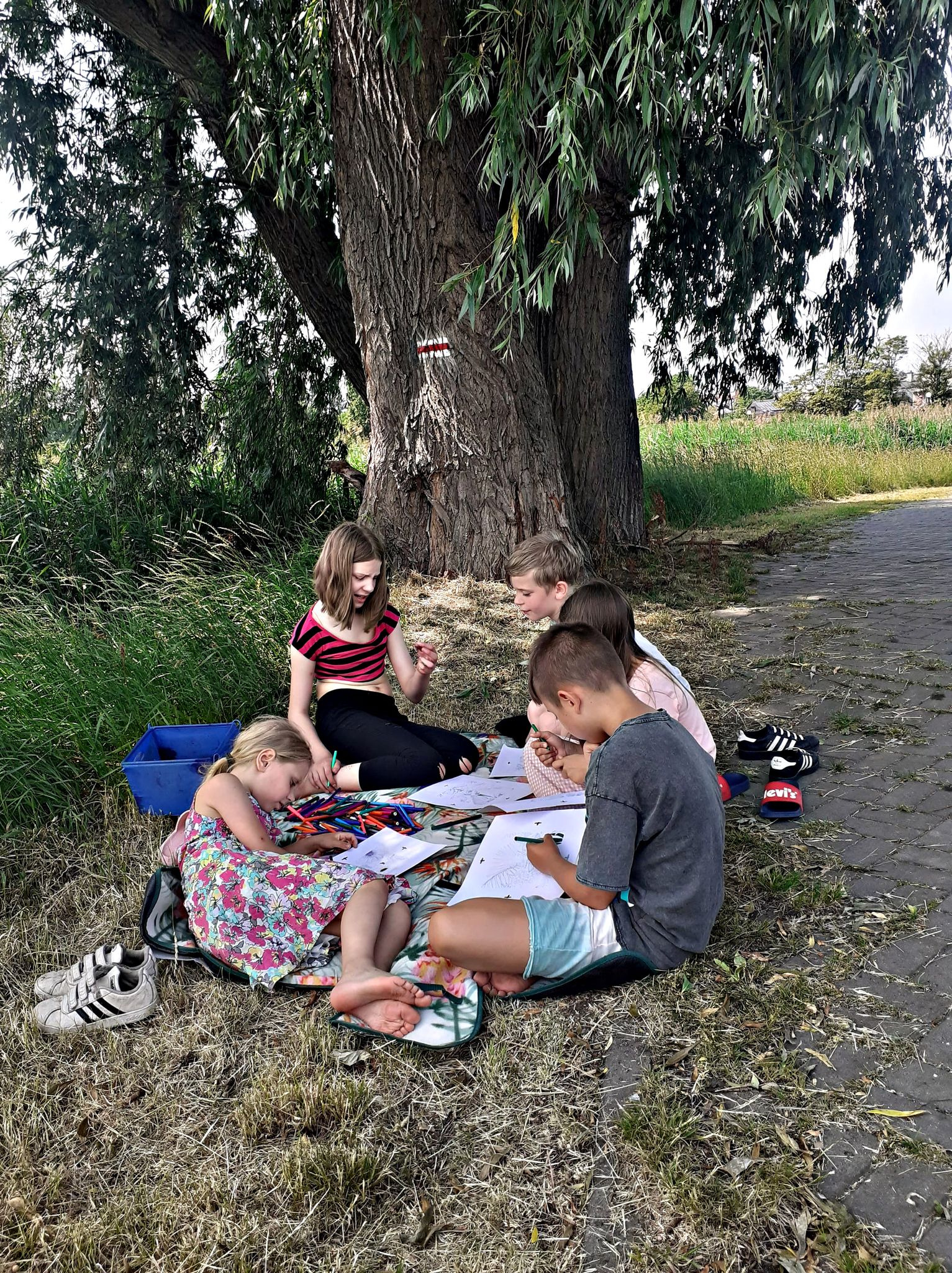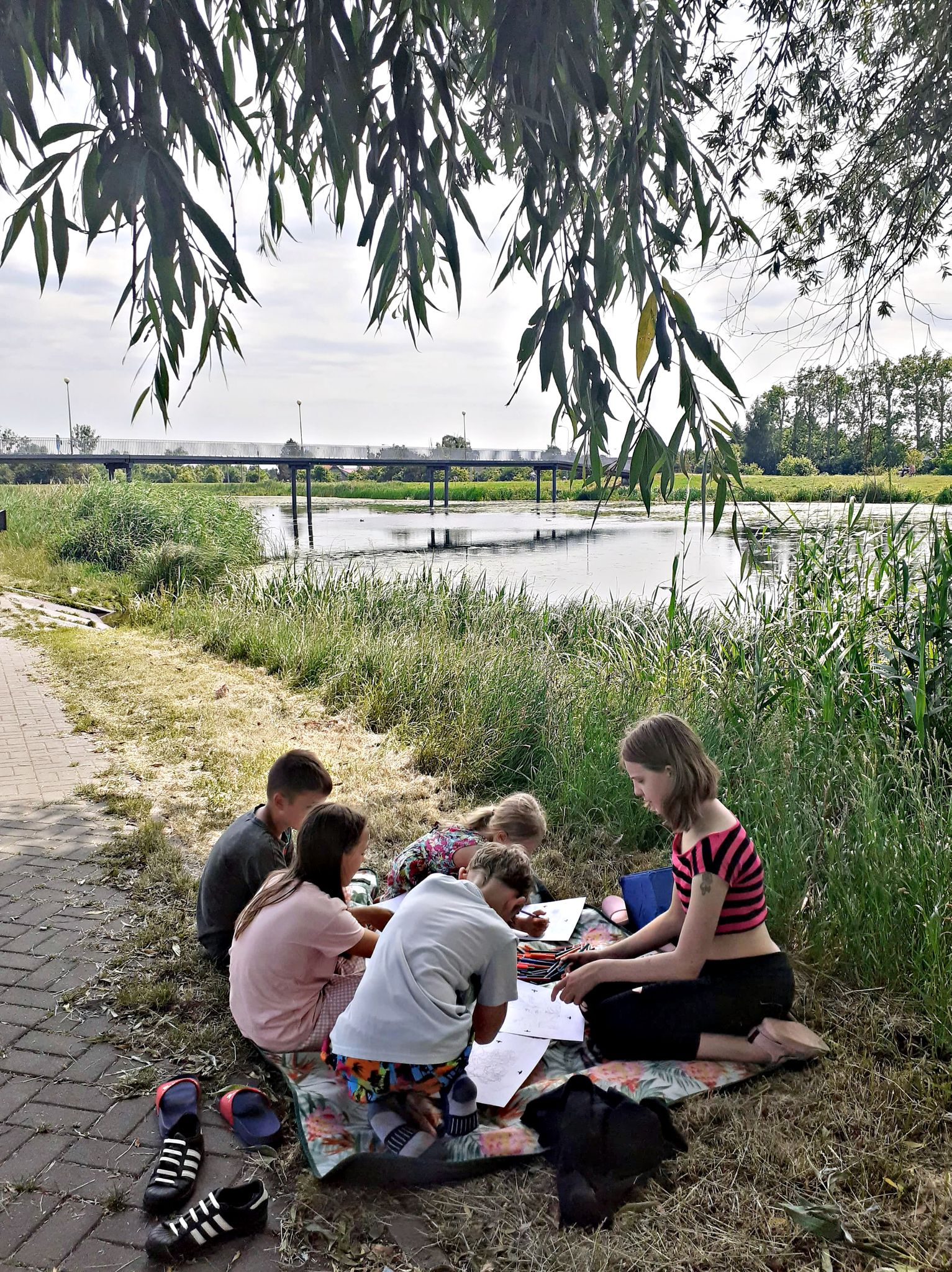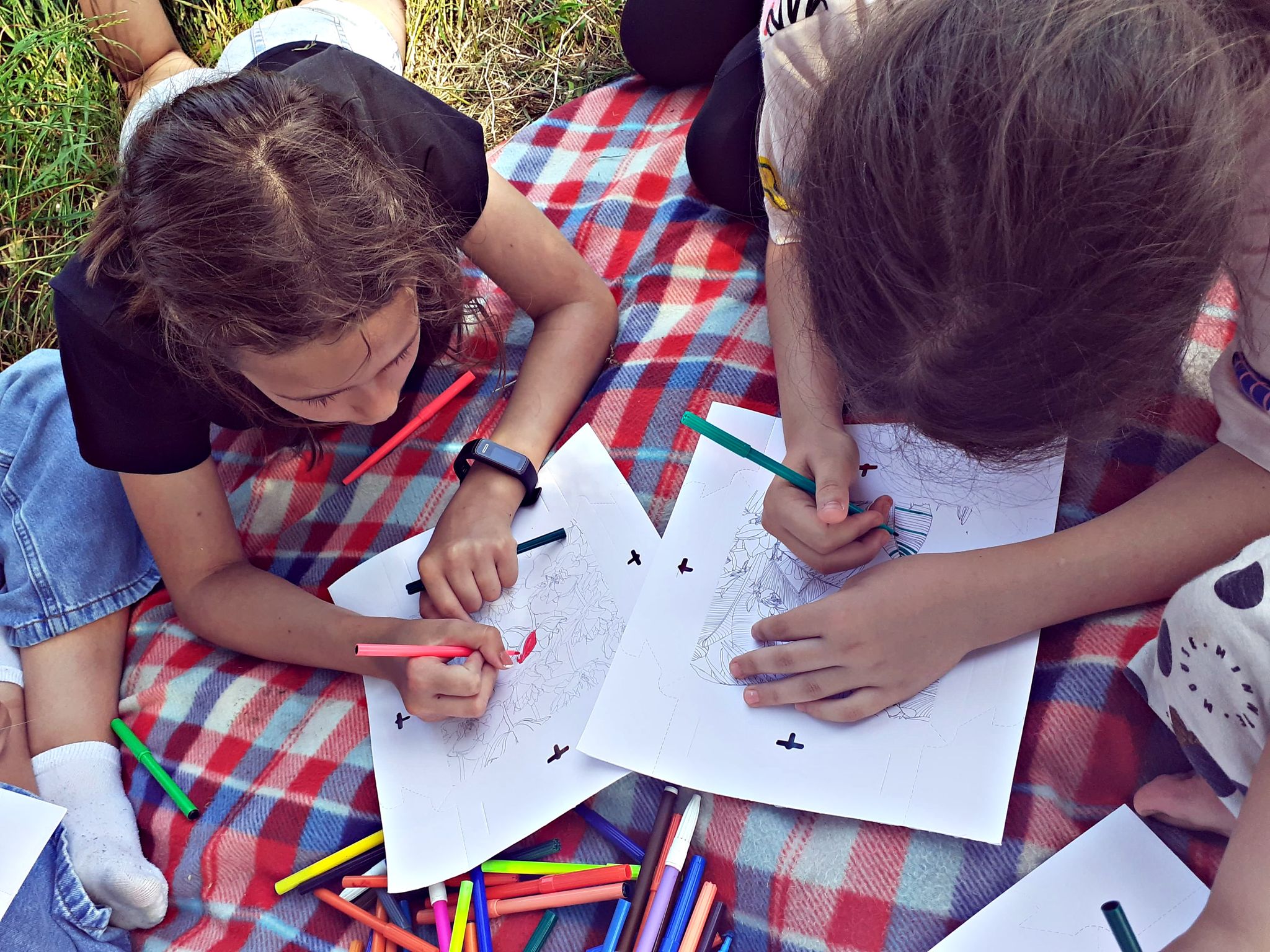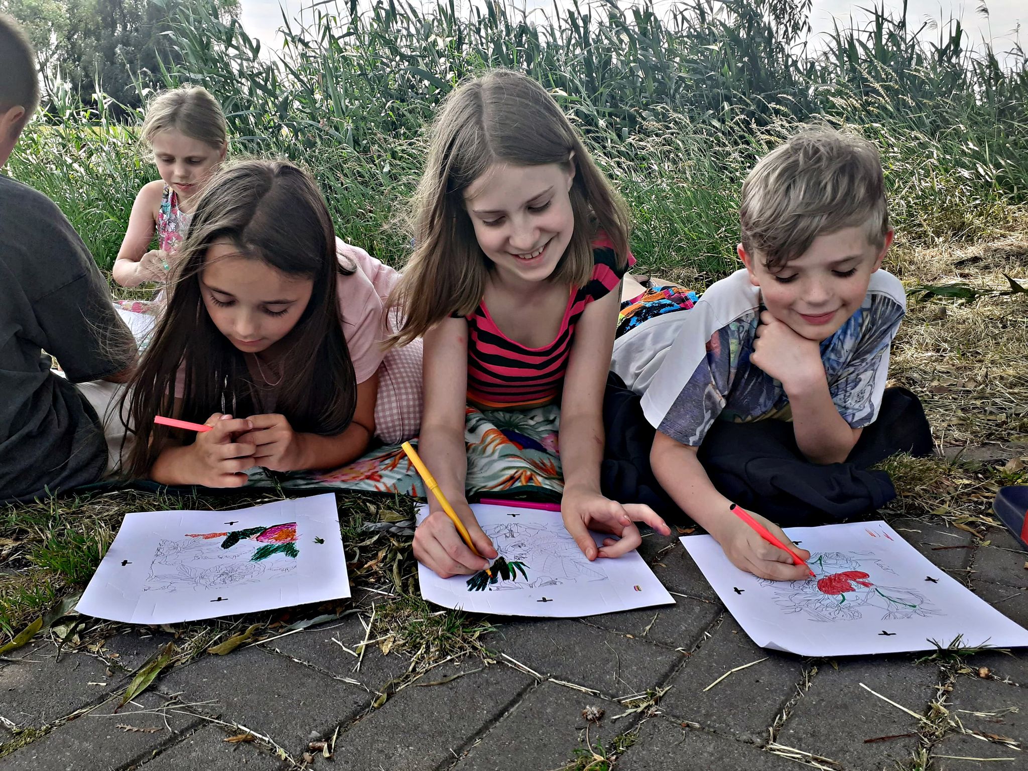 W minionym tygodniu podziwialiśmy uroki naszej pięknej dzielnicy. Wybraliśmy się w teren, gdzie odbyły się zajęcia plastyczne w miłych okolicznościach przyrody. Ciepło, jednak w cieniu drzew pracowało się bardzo przyjemnie. Zrobiliśmy sobie papierowe składanki kanva, które po pokolorowaniu i złożeniu wyglądały jak małe obrazki na płótnie. Wszystkie w motywach roślinnych, co doskonale wpasowuje się w wakacyjny klimat. Podczas wyjścia spotkaliśmy Faustyna – naszego dawnego psa terapeutę. To było na prawdę miłe spotkanie i cały dzień.
