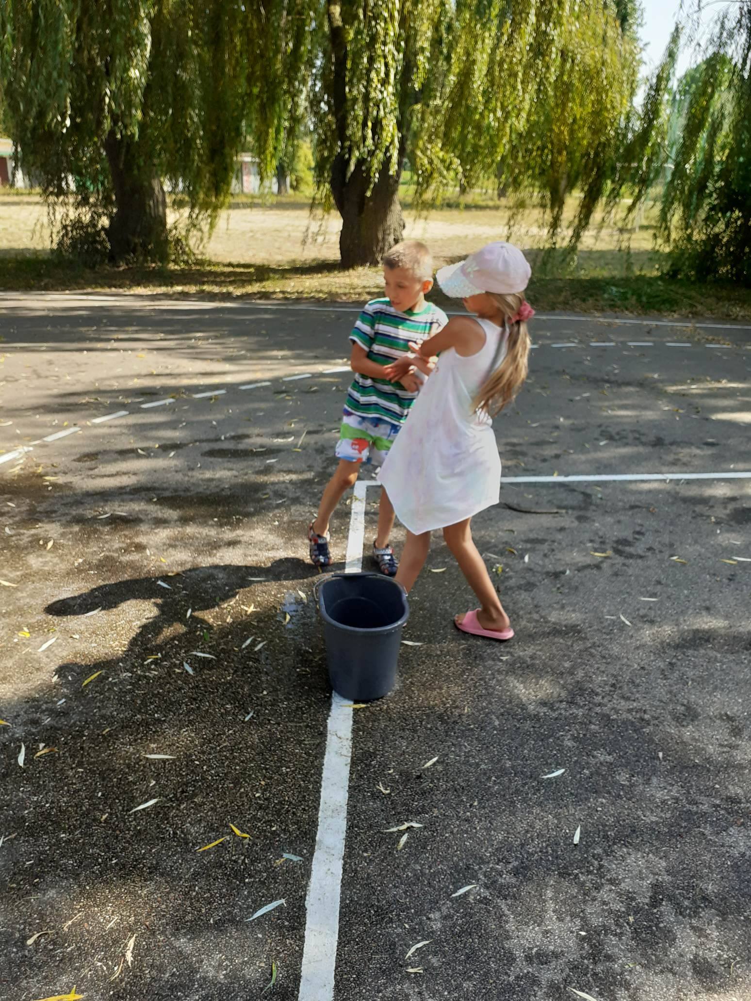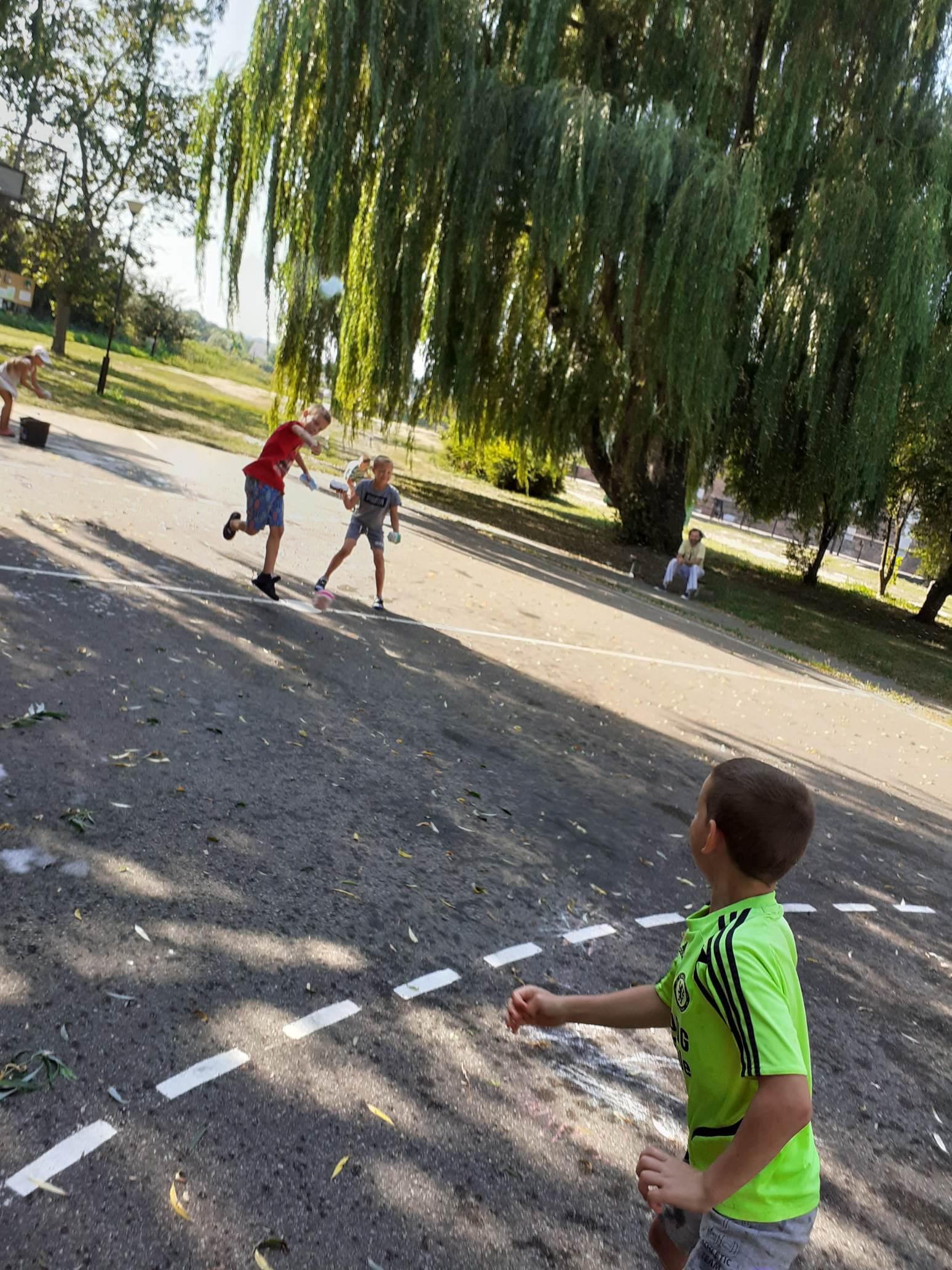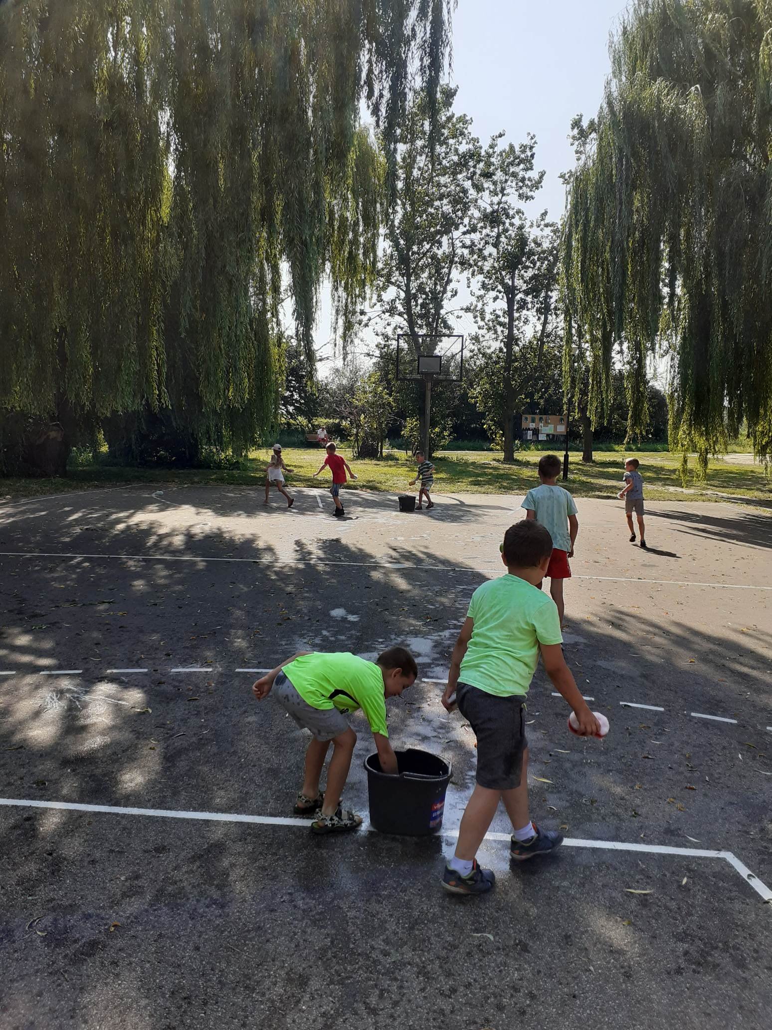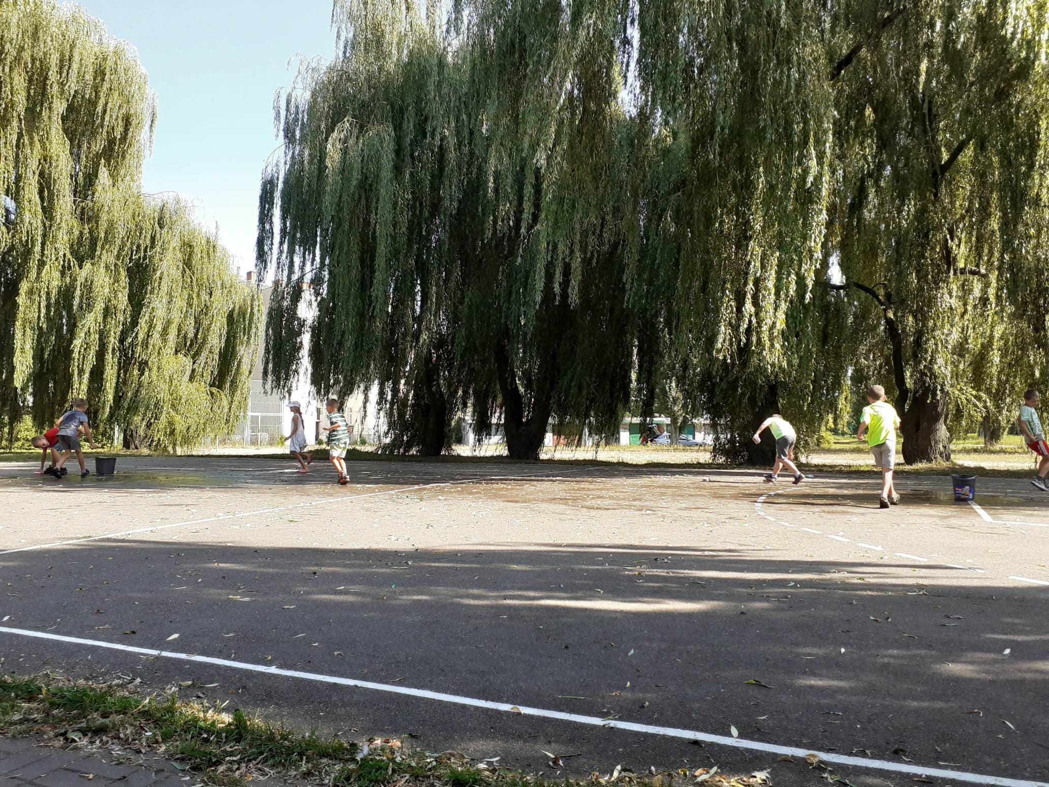 Na upały najlepsza zabawa z udziałem wody w roli głównej. Dlatego urządziliśmy sobie bitwę na gąbki. Oj, działo się! Dwie drużyny, dwa wiadra pełne wody i gąbki jako nasze „piłki”. Trochę zbijak, trochę bitwa na balony – super zabawa!