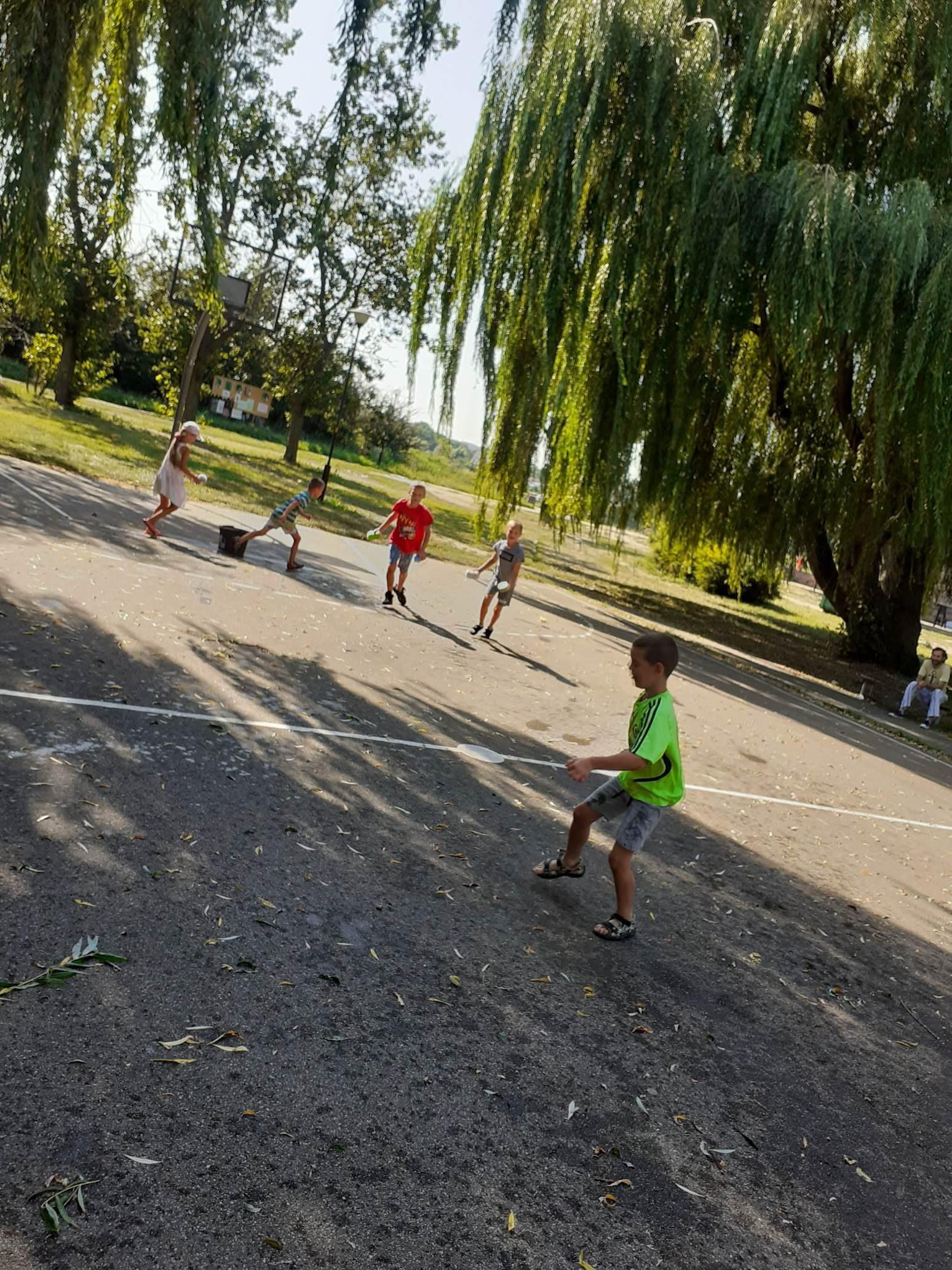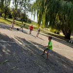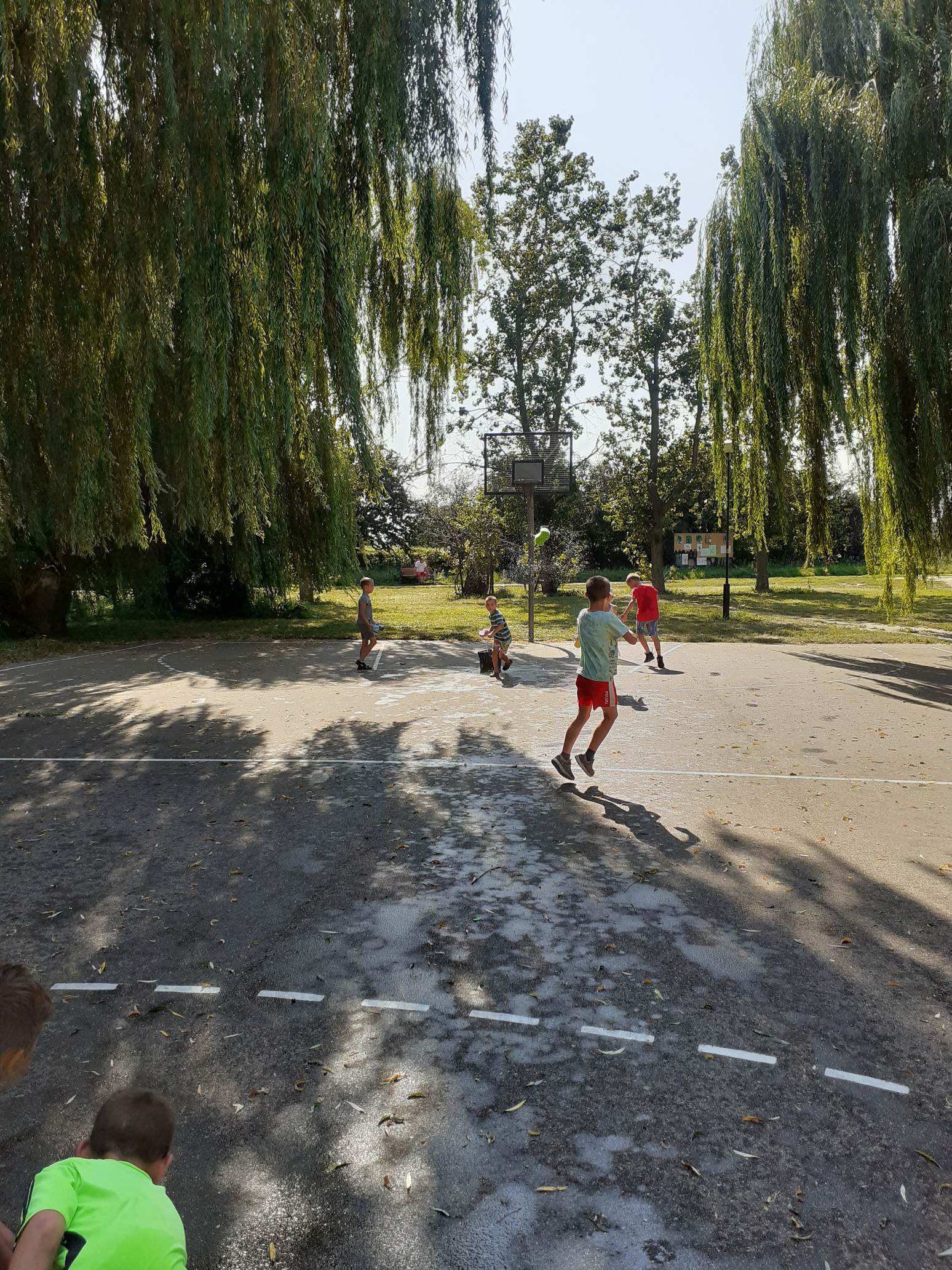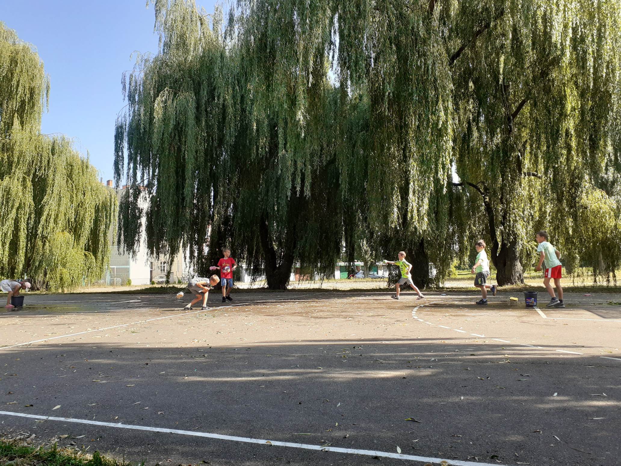 Na upały najlepsza zabawa z udziałem wody w roli głównej. Dlatego urządziliśmy sobie bitwę na gąbki. Oj, działo się! Dwie drużyny, dwa wiadra pełne wody i gąbki jako nasze „piłki”. Trochę zbijak, trochę bitwa na balony – super zabawa!