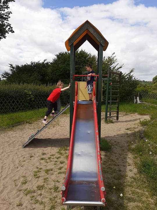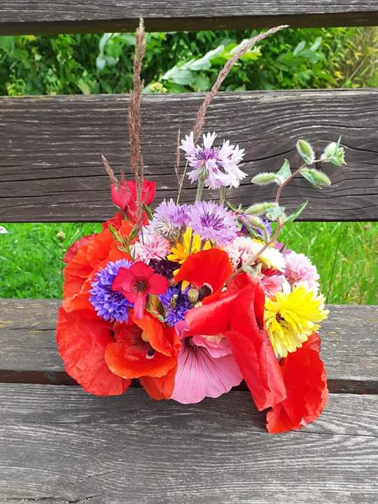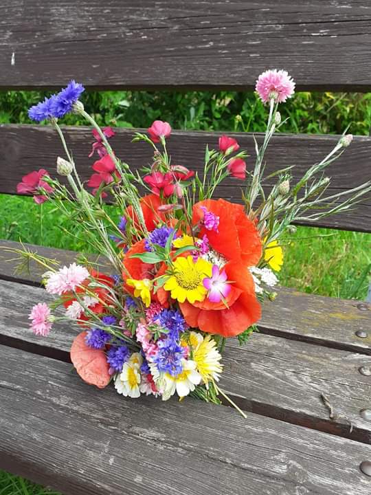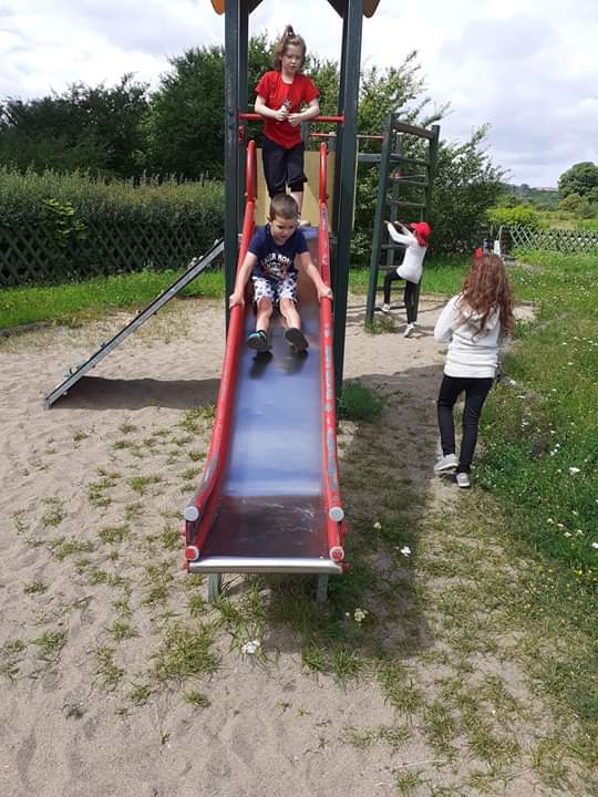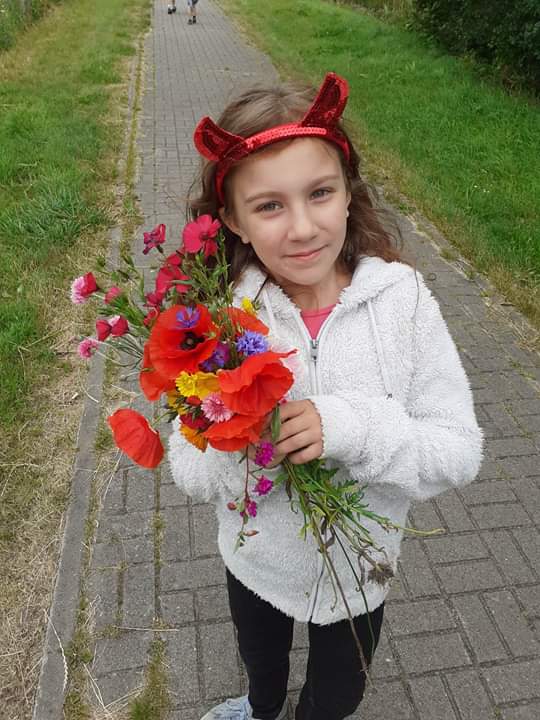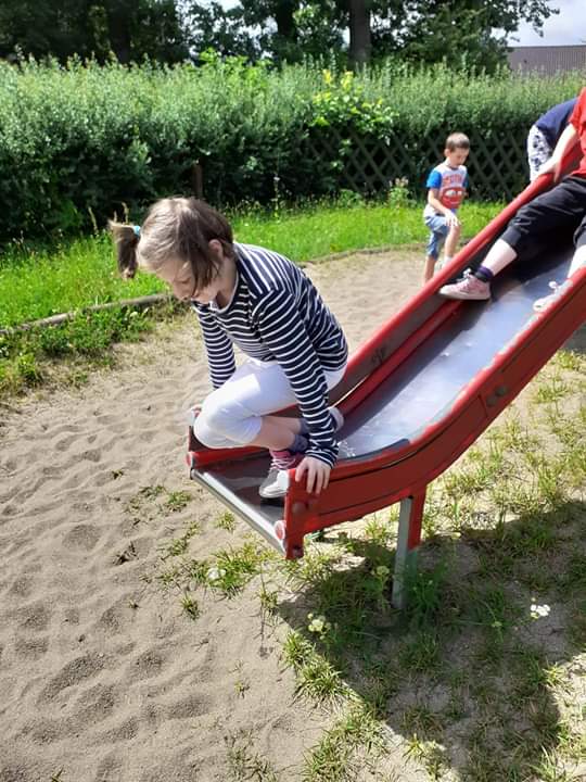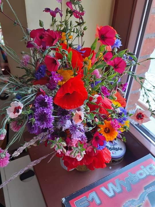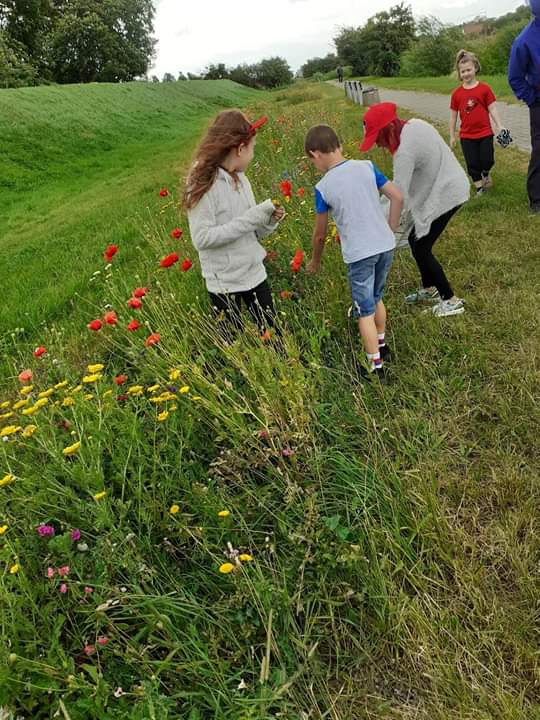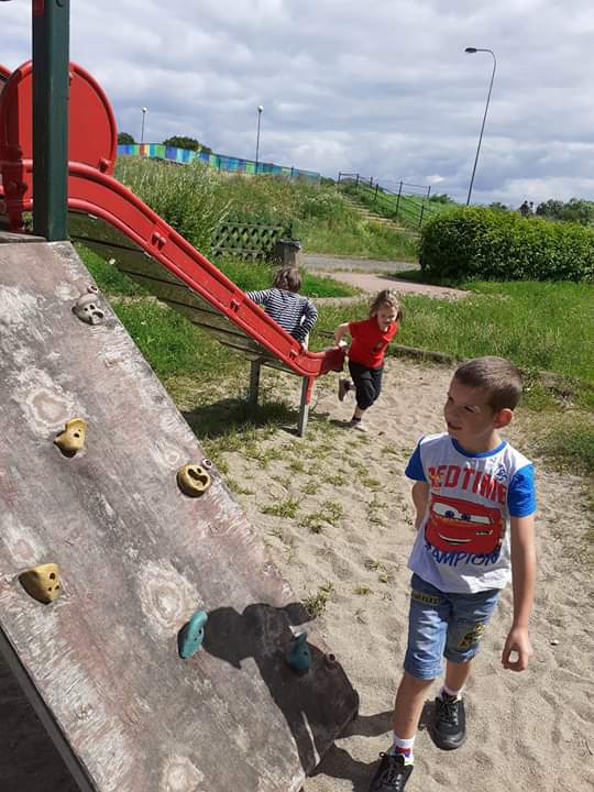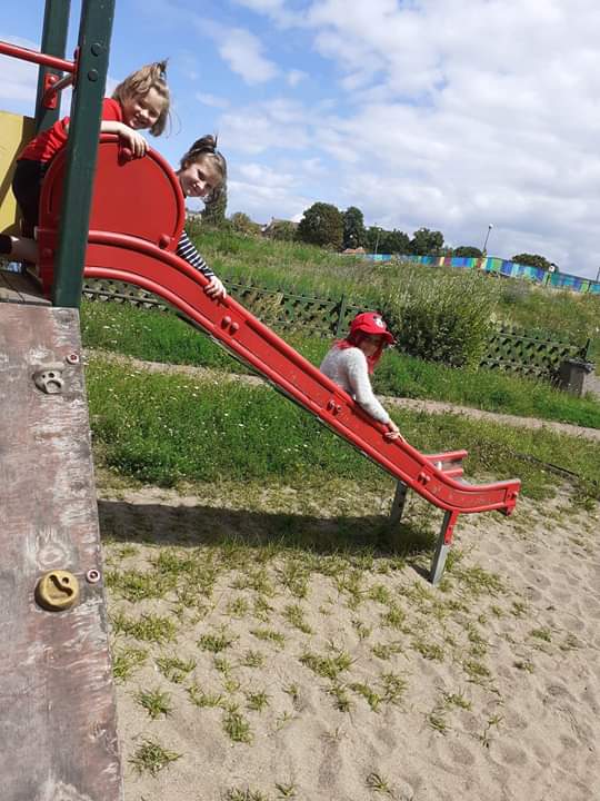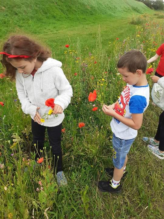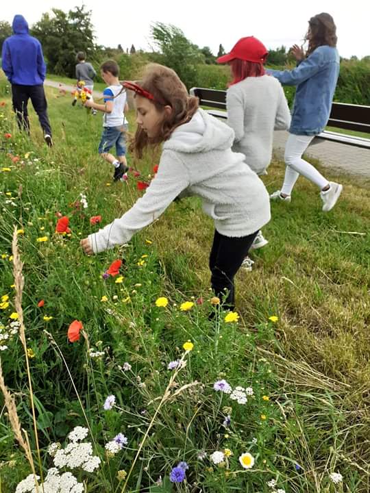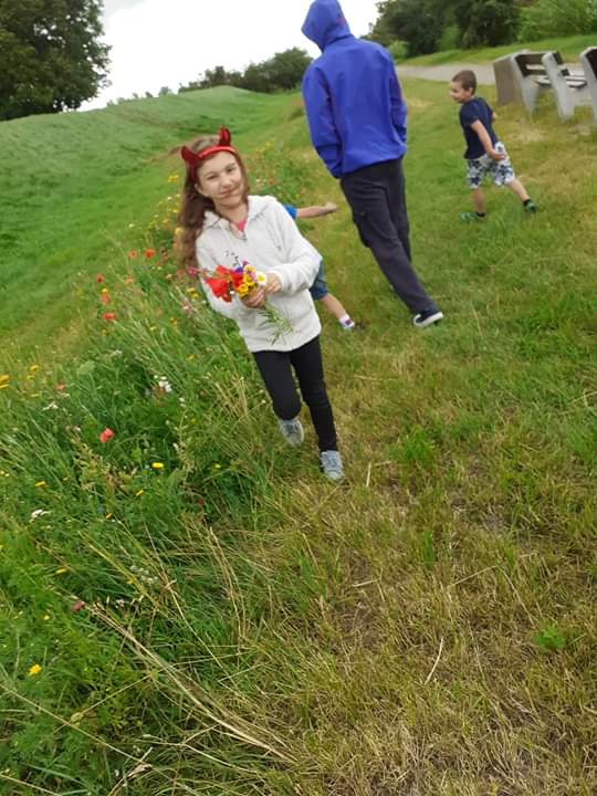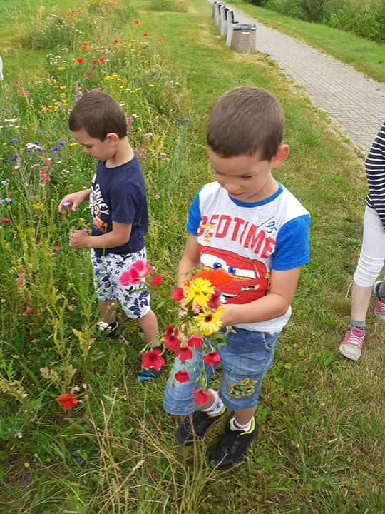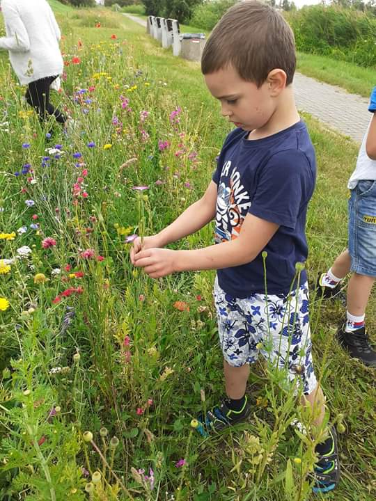 Pogoda dopisywała, więc wyszliśmy na spacer po okolicy. Nie nudziliśmy się, bo spożytkowaliśmy nasze ogromne pokłady energii na kolorowym placu zabaw, a przy okazji zebraliśmy piękne polne kwiaty, które stały się ozdobą naszej świetlicy. Zrobiło się miło, kolorowo i bardzo wakacyjnie.
