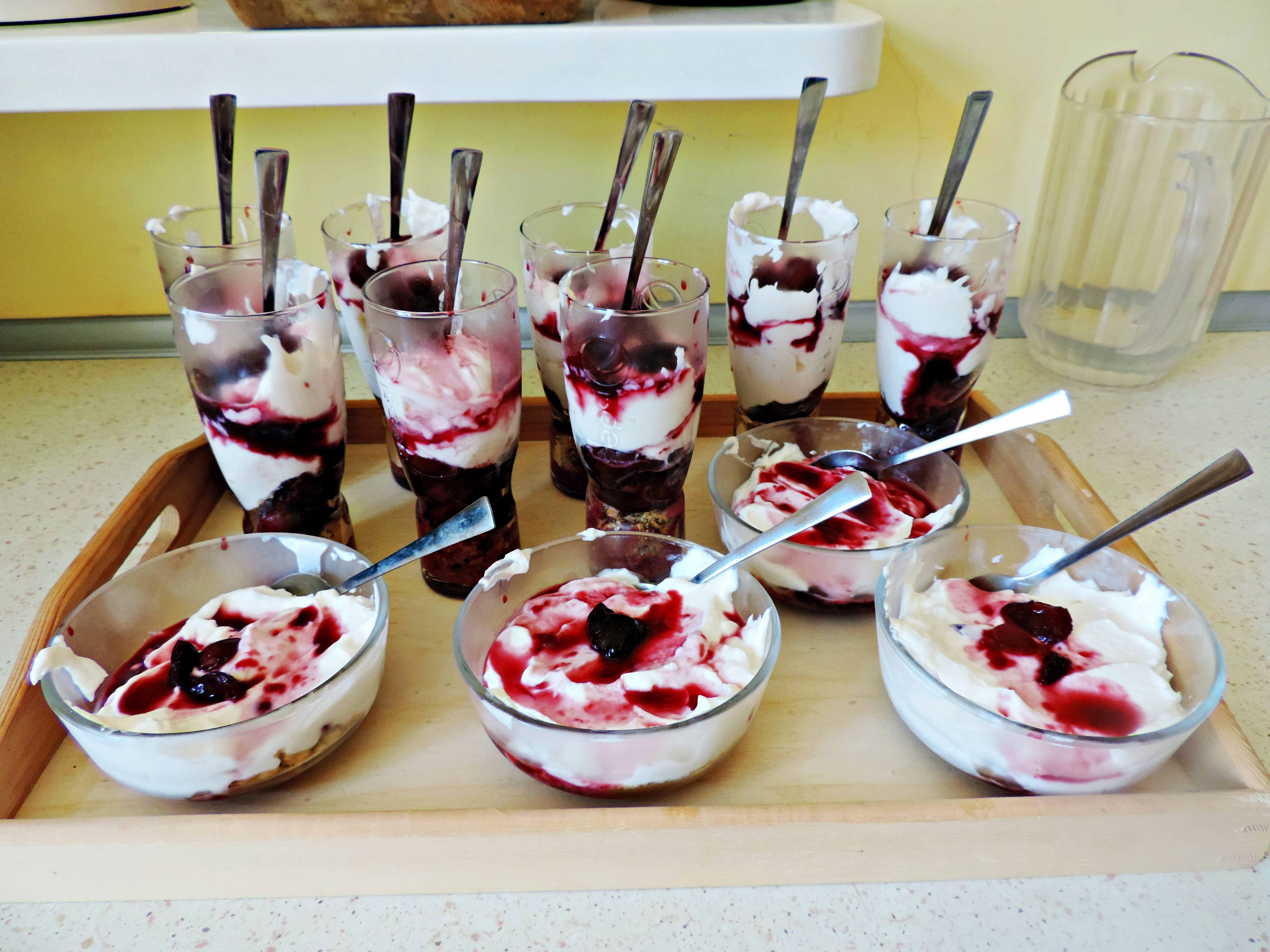 Kolejny pyszny sezonowy owoc wskoczył na nasz warsztat. A jak owoc, to oczywiście musi być i deser! Czereśnie, ser ricotta, trochę soku z cytryny i brązowego cukru i nic nam więcej do szczęścia nie potrzeba. Zrobiliśmy wszystko całkowicie sami – od początku do końca. Ciocie nawet nie musiały robić zakupów, my się tym zajęliśmy. Było wesoło i na prawdę smacznie.