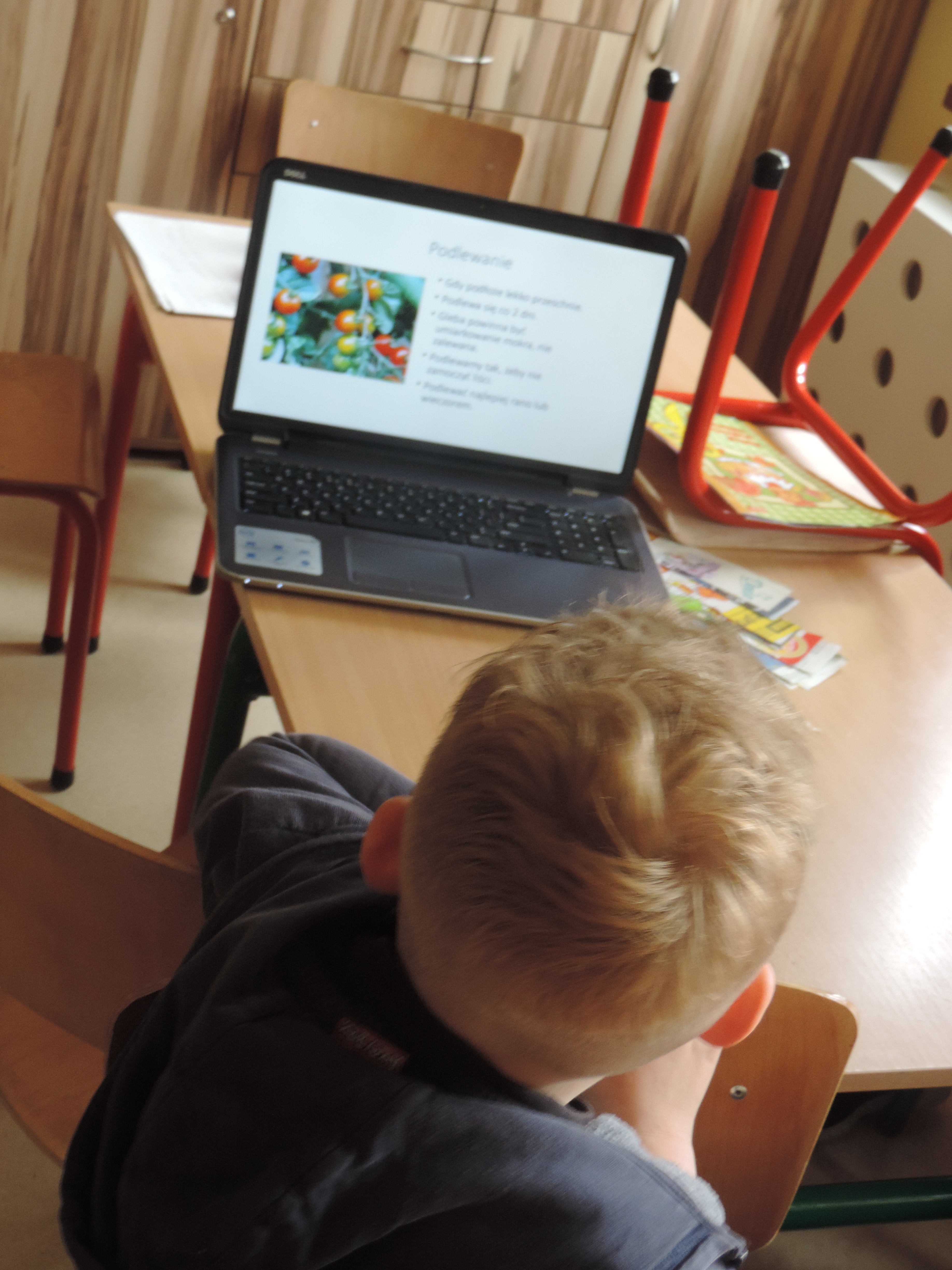 Przypominaliśmy sobie jak dbać o nasze pomidorki i spisaliśmy wszystkie ważniejsze zasady dotyczące podlewania, przesadzania, nasłoneczniania, zbiorów. A pomogły nam w tym nasze super moce, które odkrywaliśmy z panią Anią na zajęciach profilaktycznych. Okazało się, że mamy ich całkiem sporo, jesteśmy na prawdę zdolnymi dziećmi!