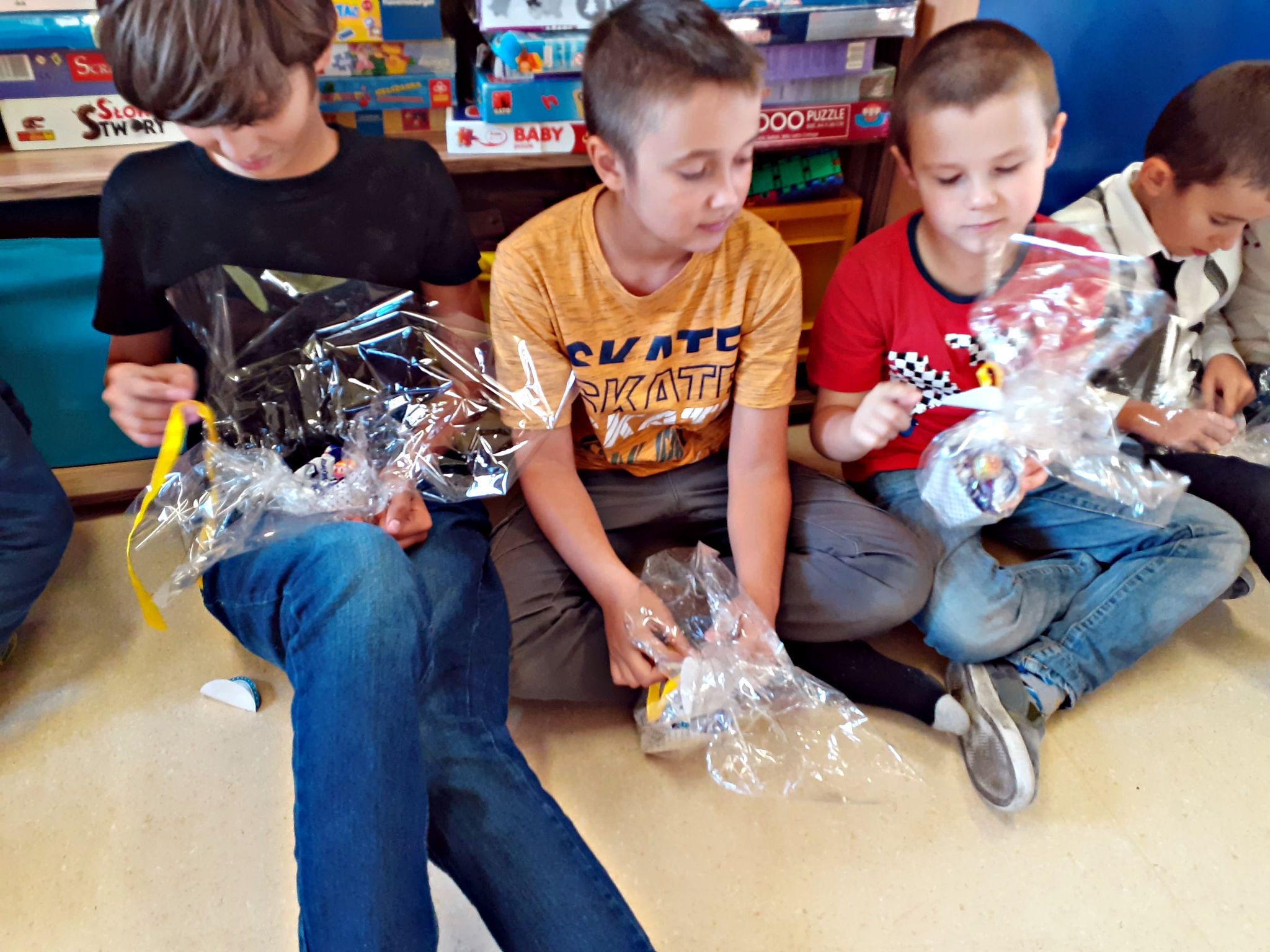 Słodkie prezenty były już jednak tylko dla chłopców. Ale jak na prawdziwych dżentelmenów przystało, podzielili się ze swoimi koleżankami. Cieszymy się, że tacy fajni chłopcy chodzą do naszej świetlicy!
