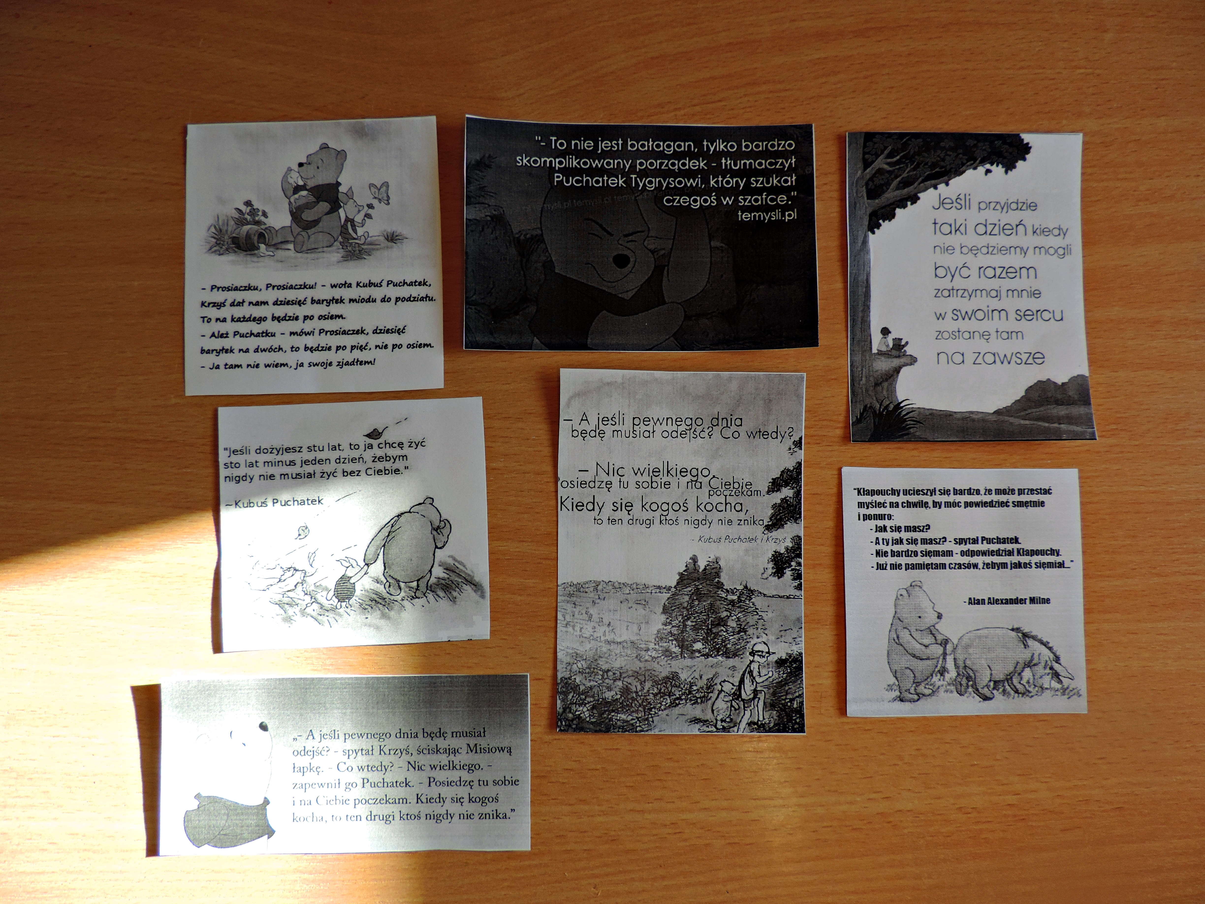 Ten i wiele innych cytatów z Kubusia Puchatka towarzyszyło nam podczas zajęć. A wszystko dlatego, że 18 stycznia jest Dzień Kubusia Puchatka. To bez wątpienia jeden z naszych ulubionych bajkowych bohaterów.