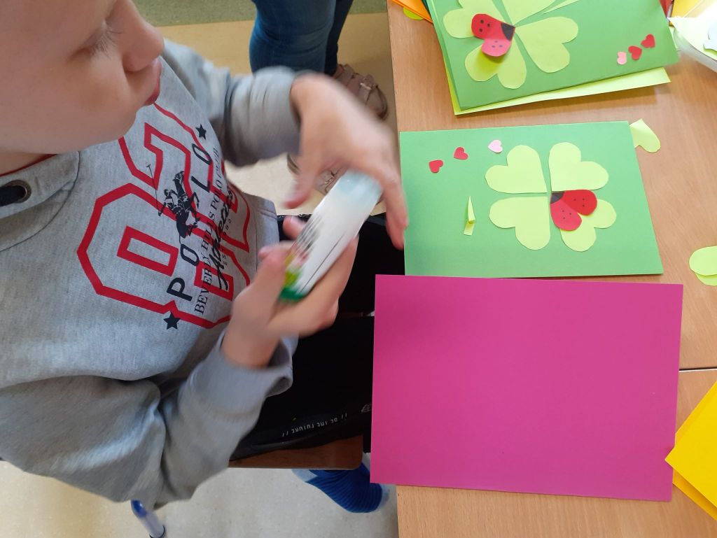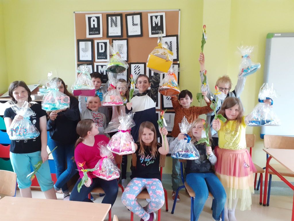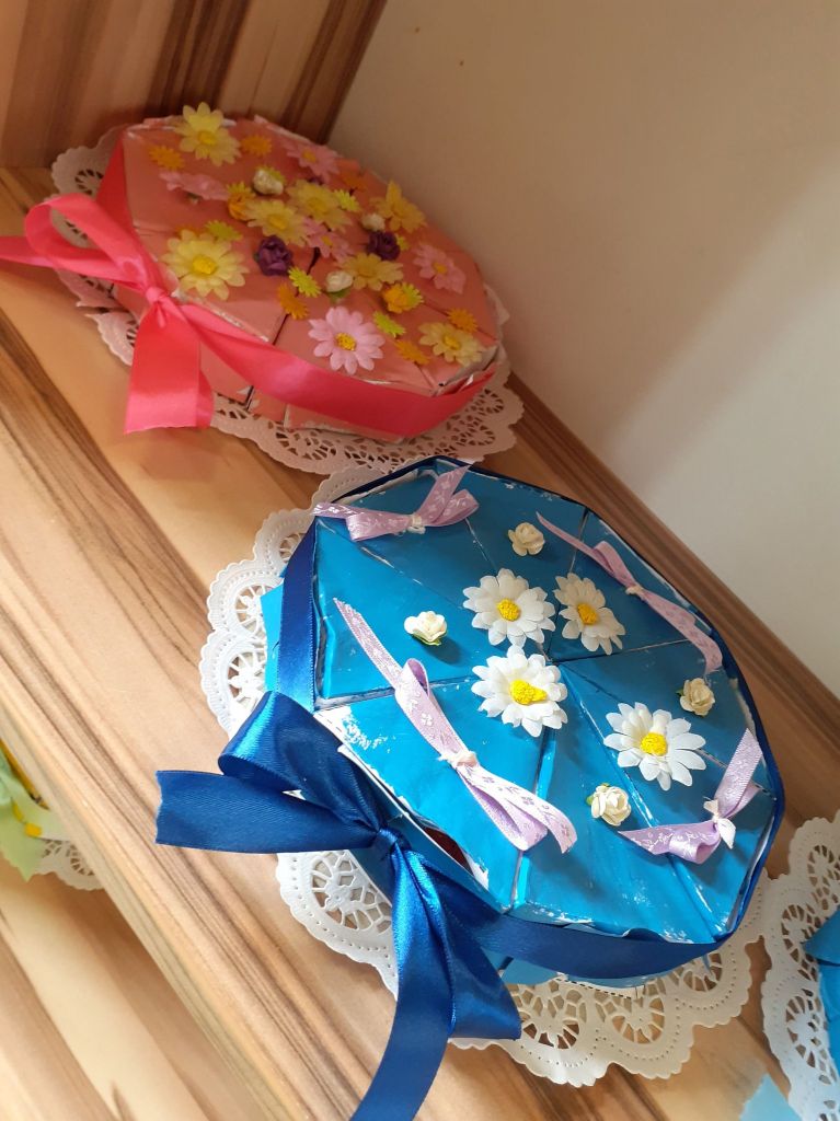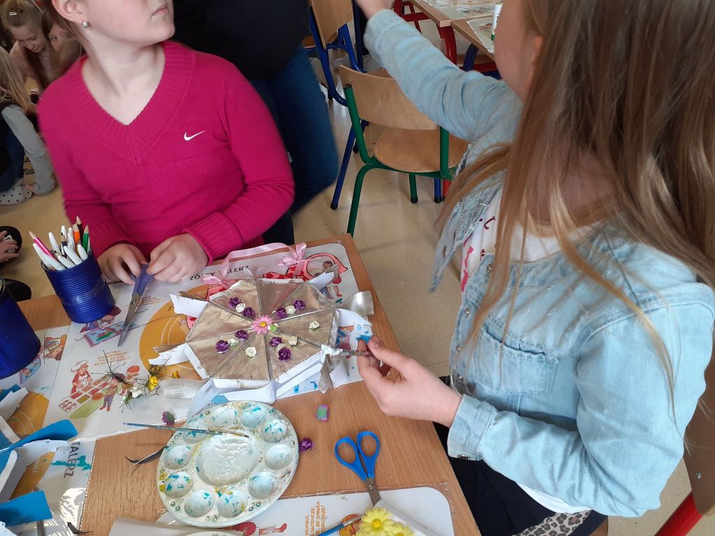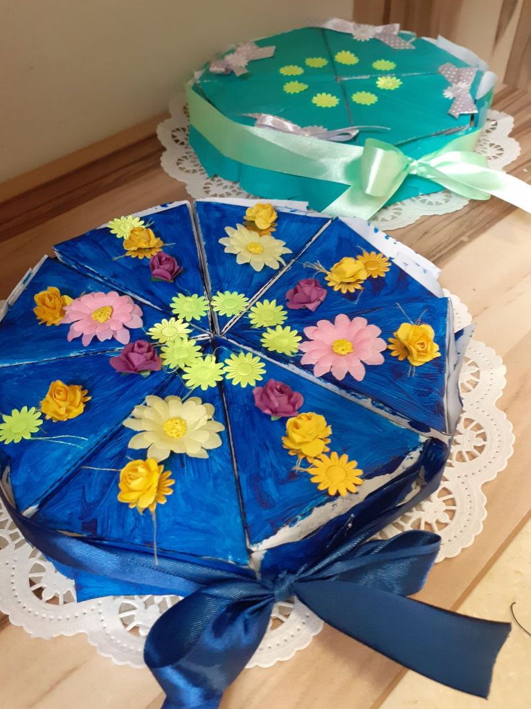 Cóż to była za praca w ostatnich dniach! W związku z Dniem Mamy na początku tygodnia ruszyły przygotowania – wycinaliśmy, zginaliśmy, sklejaliśmy, rysowaliśmy, ozdabialiśmy. Robiliśmy wszystko, aby zdążyć i udało się! W środę ze świetlicy wyszliśmy z pięknymi prezentami dla naszych Mam – kartkami z życzeniami, ramkami na zdjęcia które były pomysłem naszej wolontariuszki Inmy oraz tortami! Torty były co prawda z papieru, ale wykonane tak, że wyglądały jak prawdziwe. Słodkie też były, bo ukryliśmy w ich wnętrzu cukierki. Mamy nadzieję, że u każdej Mamy pojawił się szeroki uśmiech na twarzy po otrzymaniu takich upominków.