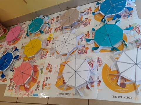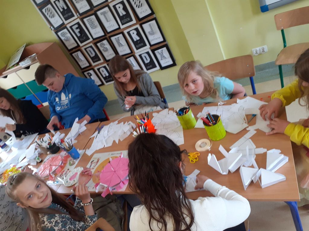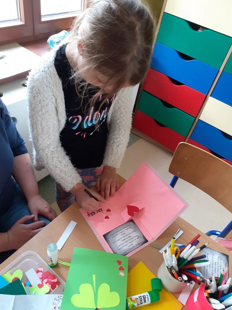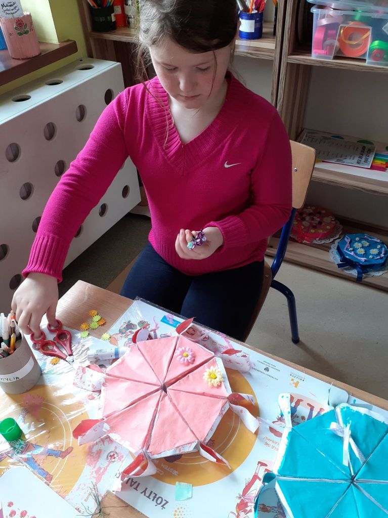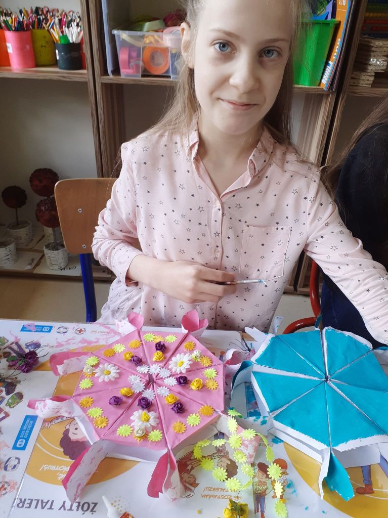 Cóż to była za praca w ostatnich dniach! W związku z Dniem Mamy na początku tygodnia ruszyły przygotowania – wycinaliśmy, zginaliśmy, sklejaliśmy, rysowaliśmy, ozdabialiśmy. Robiliśmy wszystko, aby zdążyć i udało się! W środę ze świetlicy wyszliśmy z pięknymi prezentami dla naszych Mam – kartkami z życzeniami, ramkami na zdjęcia które były pomysłem naszej wolontariuszki Inmy oraz tortami! Torty były co prawda z papieru, ale wykonane tak, że wyglądały jak prawdziwe. Słodkie też były, bo ukryliśmy w ich wnętrzu cukierki. Mamy nadzieję, że u każdej Mamy pojawił się szeroki uśmiech na twarzy po otrzymaniu takich upominków.