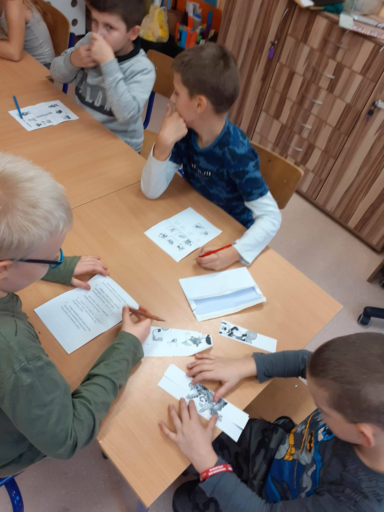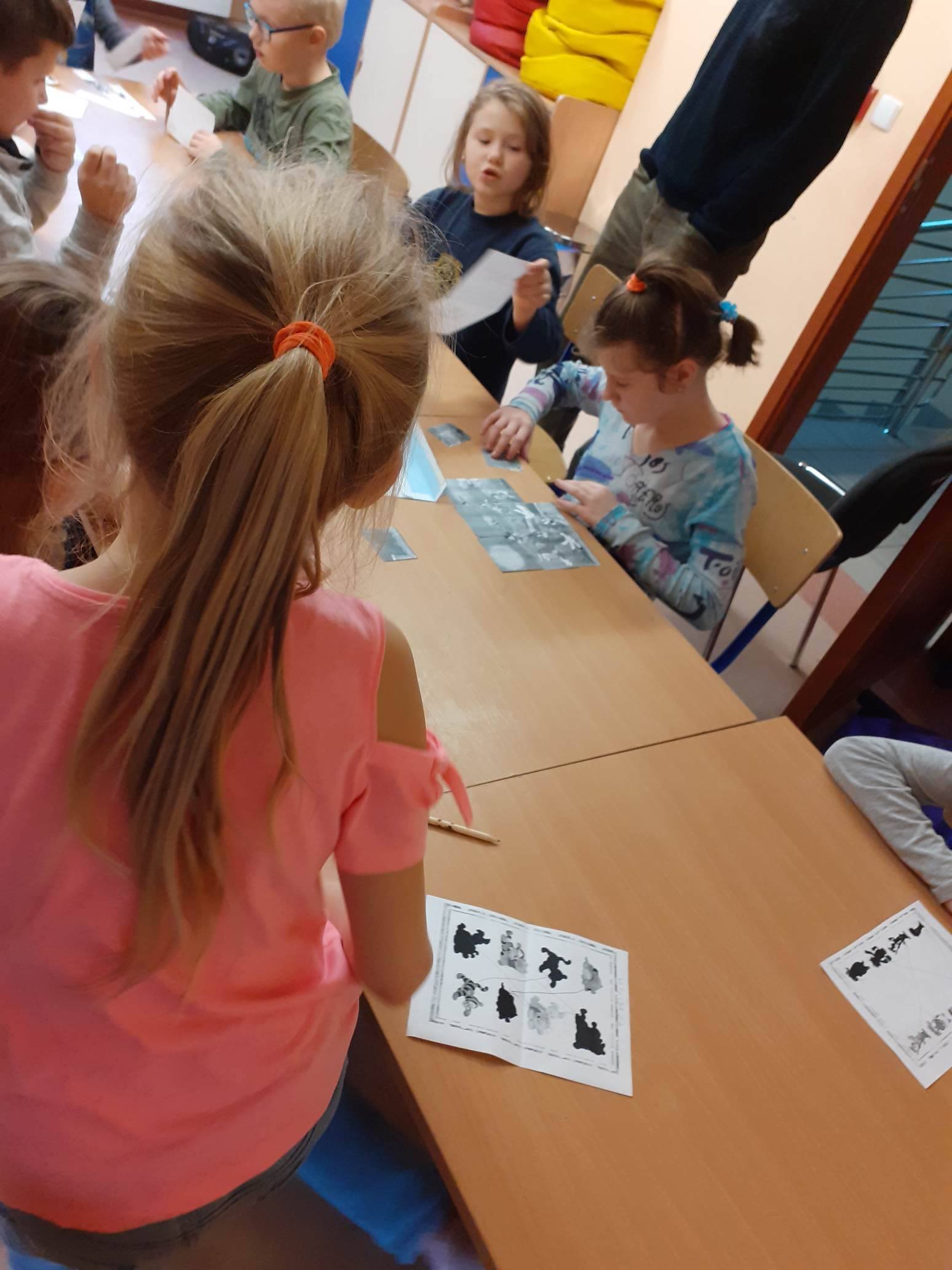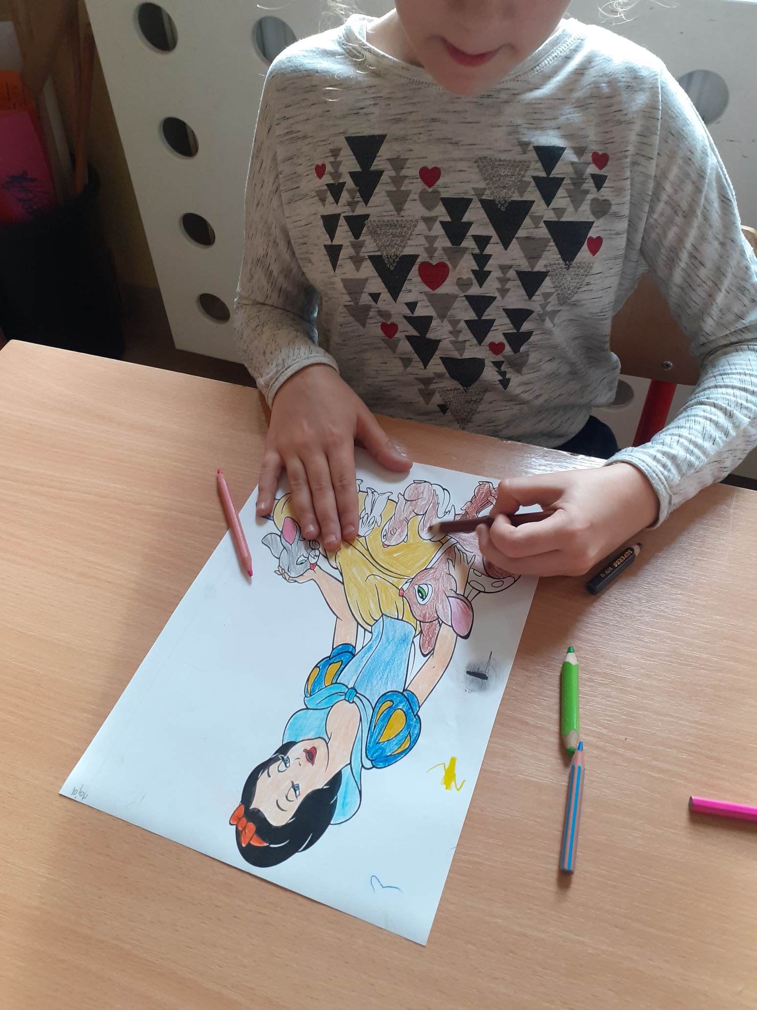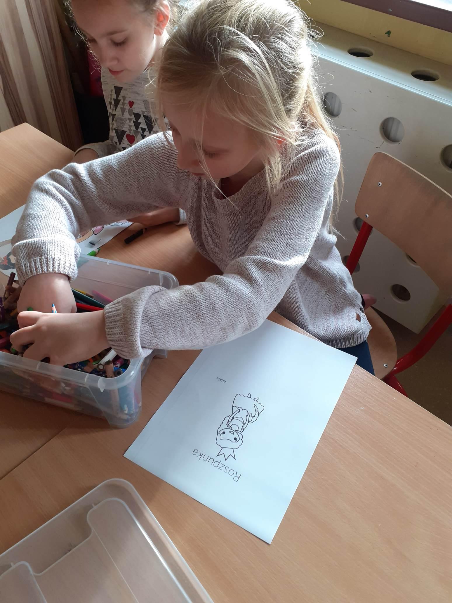 Wczoraj zajrzeliśmy do kalendarza i co znaleźliśmy? Okazało się, że to Dzień postaci z bajek. Ciocie były na tą okazję przygotowane, bo dla każdego z nas zostało w świetlicy ukryte zadanie. Były to krzyżówki, zagadki, puzzle, rozpoznawanie cieni i dopasowywanie imion. Wszystko oczywiście dotyczyło postaci z bajek. Uporaliśmy się z zadaniami i pokolorowaliśmy naszych ulubionych bajkowych bohaterów.
